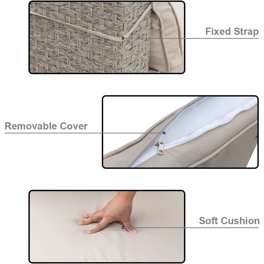 • Soft & Comfortable Cushion:A sofa set comes with four thickened cushions and four soft pillows that can be removed with a zipper so you can clean the fabric cover; The surface of the cushion can protect it from water droplets, but it can’t be exposed to rain for a long time; So the cushion must be promptly retracted in rainy days.