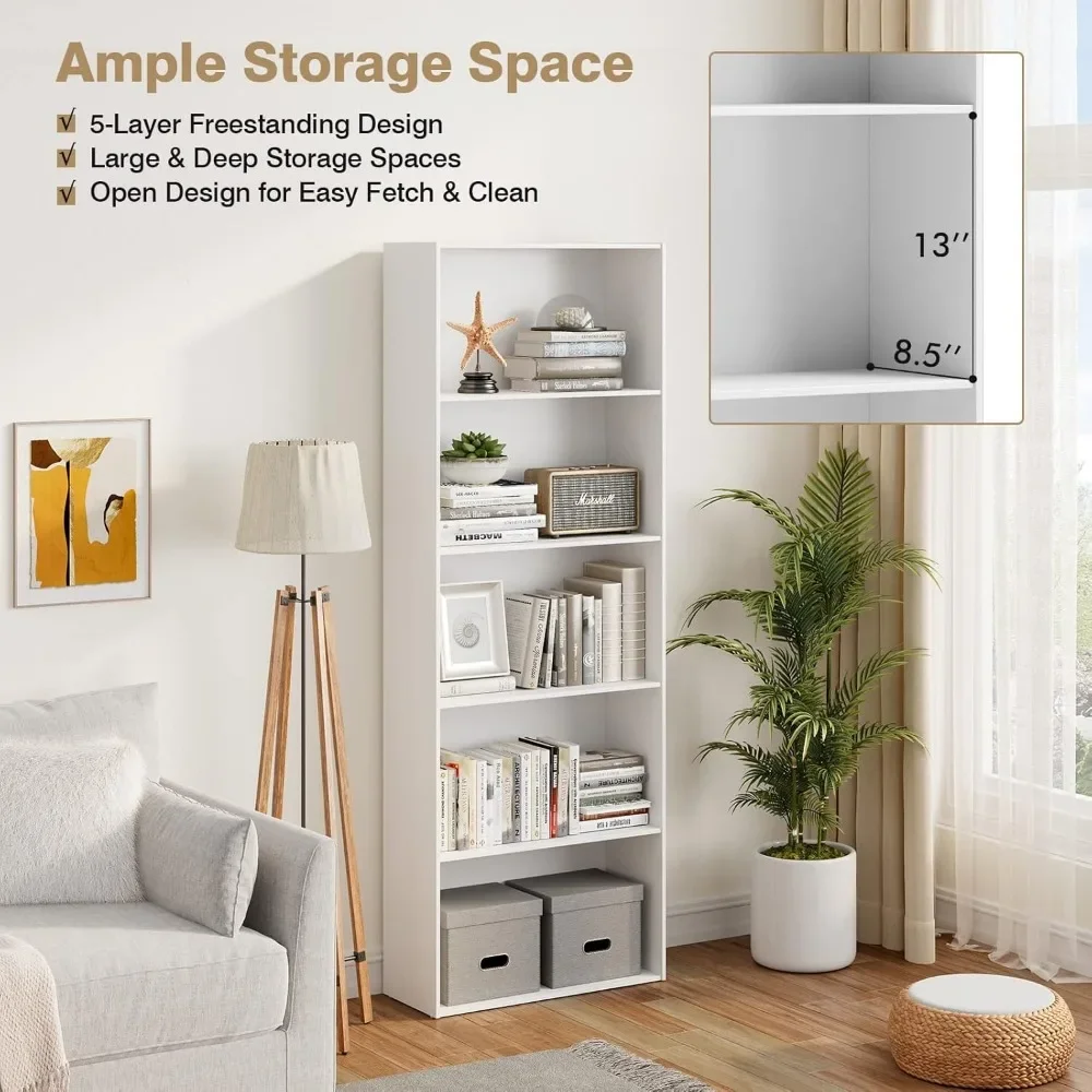 - 【Large Open Storage Space】Our bookcases have five layers of large storage space and are deep enough to store your items. The open design helps to display your books, decorations, collectibles, photo frames and more. And it can be easily taken and cleaned to make your space more orderly.