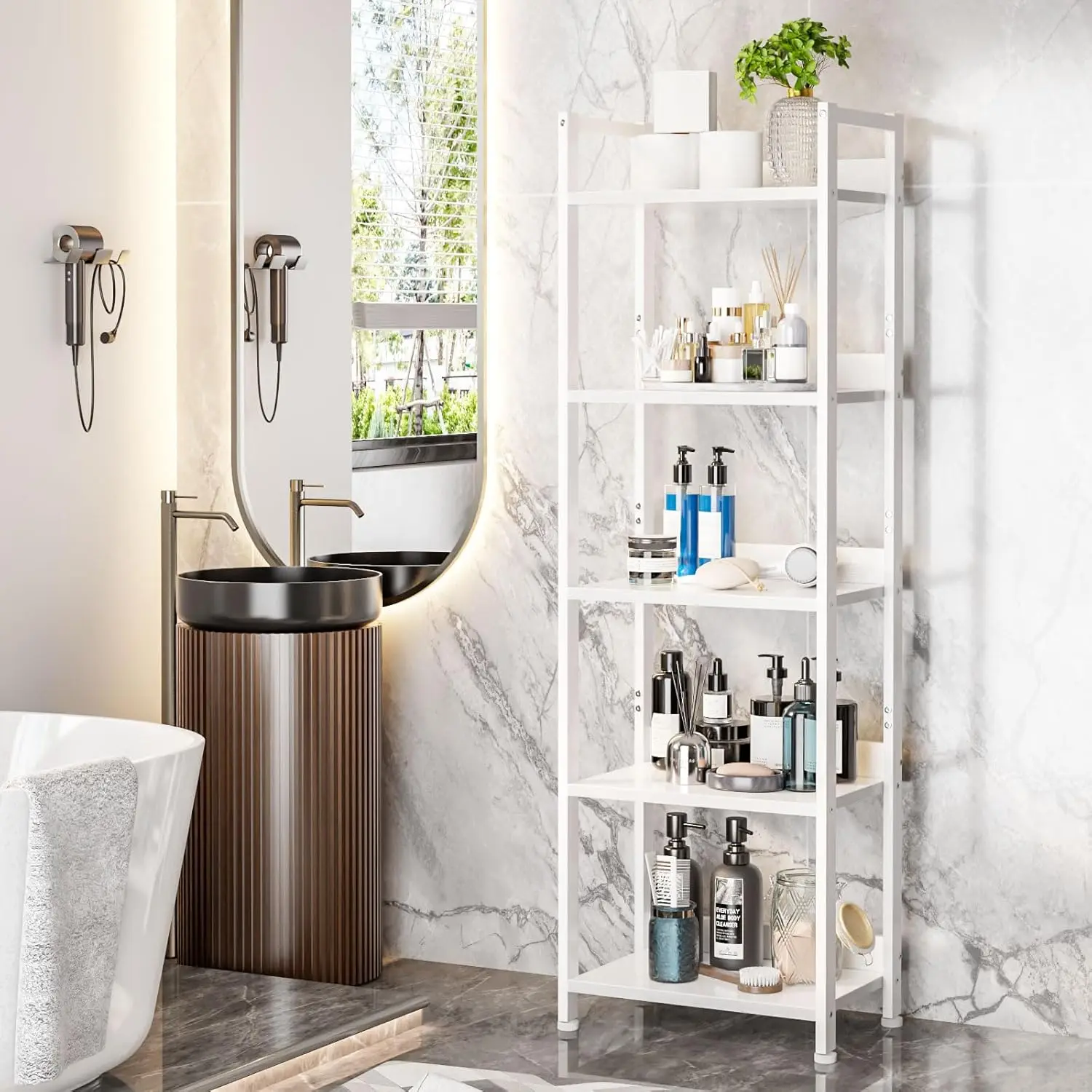 • [Space Saving]: This skinny bookshelf has 5 shelves. Its compact and lightweight design means that it takes up a small floor space. You can use this thin bookshelf to put your favorite books, crafts, photo albums, potted plants, etc. Perfect to store or display your necessities and decorations.