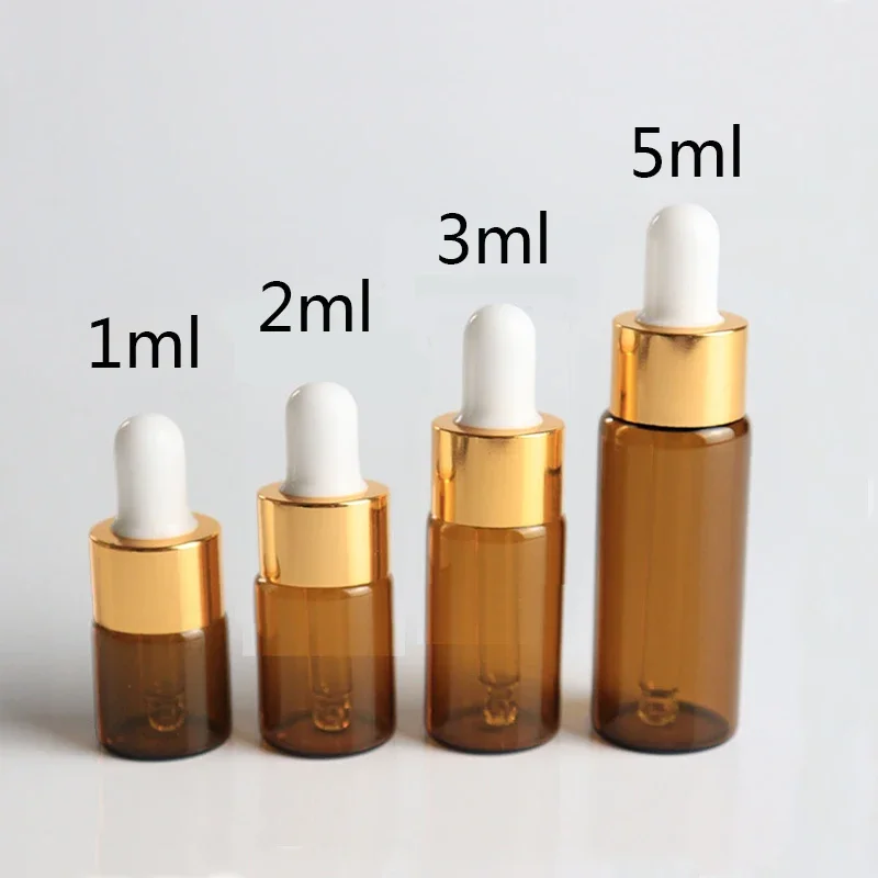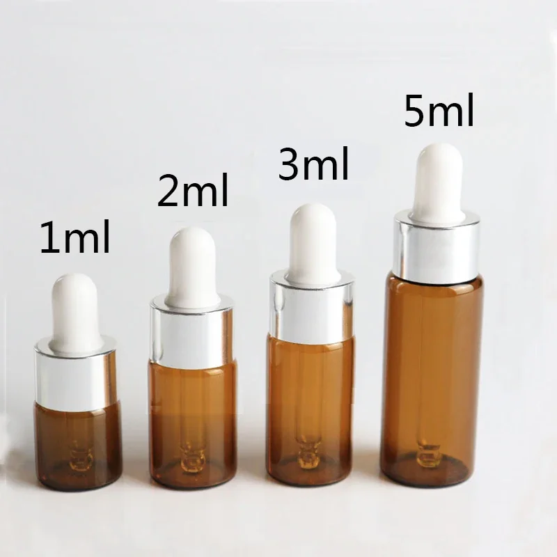 50/100Pcs Glass Essential Oil Dropper Bottles amber Mini 1ml/2ml/3ml Perfume Dropping Bottle Cosmetic Sample Vials