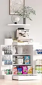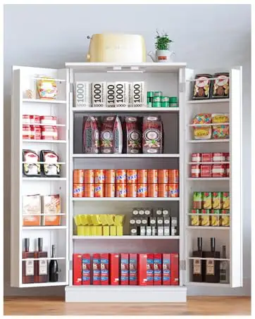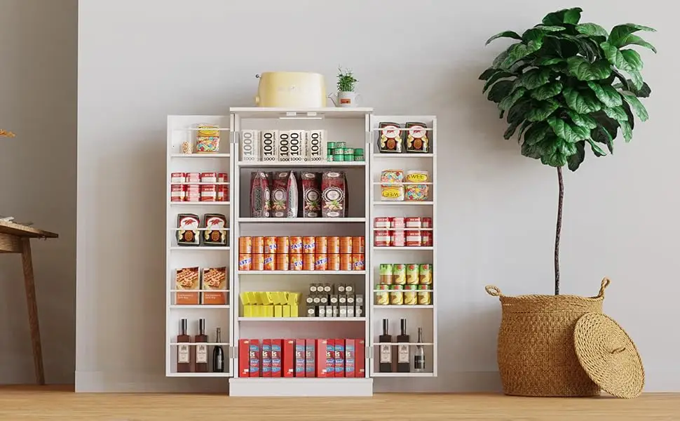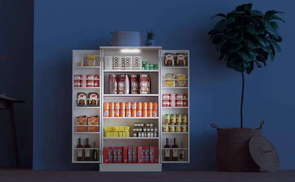 With the Pantry cabinet built-in LED lighting, you can easily locate and retrieve your stored items, reducing clutter and creating a more organized space.