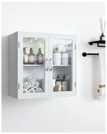 Farehouse Wall Cabinet Set Soft Glass Wall Cabinet Set 41″LED Kitchen Pantry Cabinet