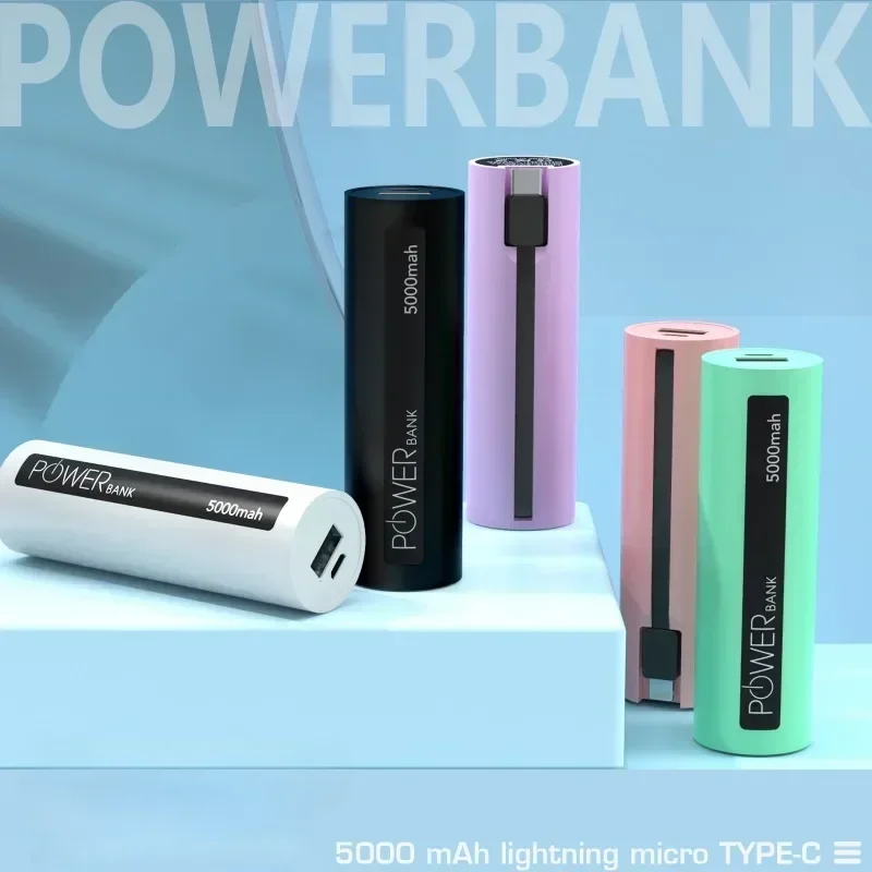 5000mAh Mini Power Bank with USB Port Built in Cable for IPhone Android External Battery Portable Phone Charger Fast Charging