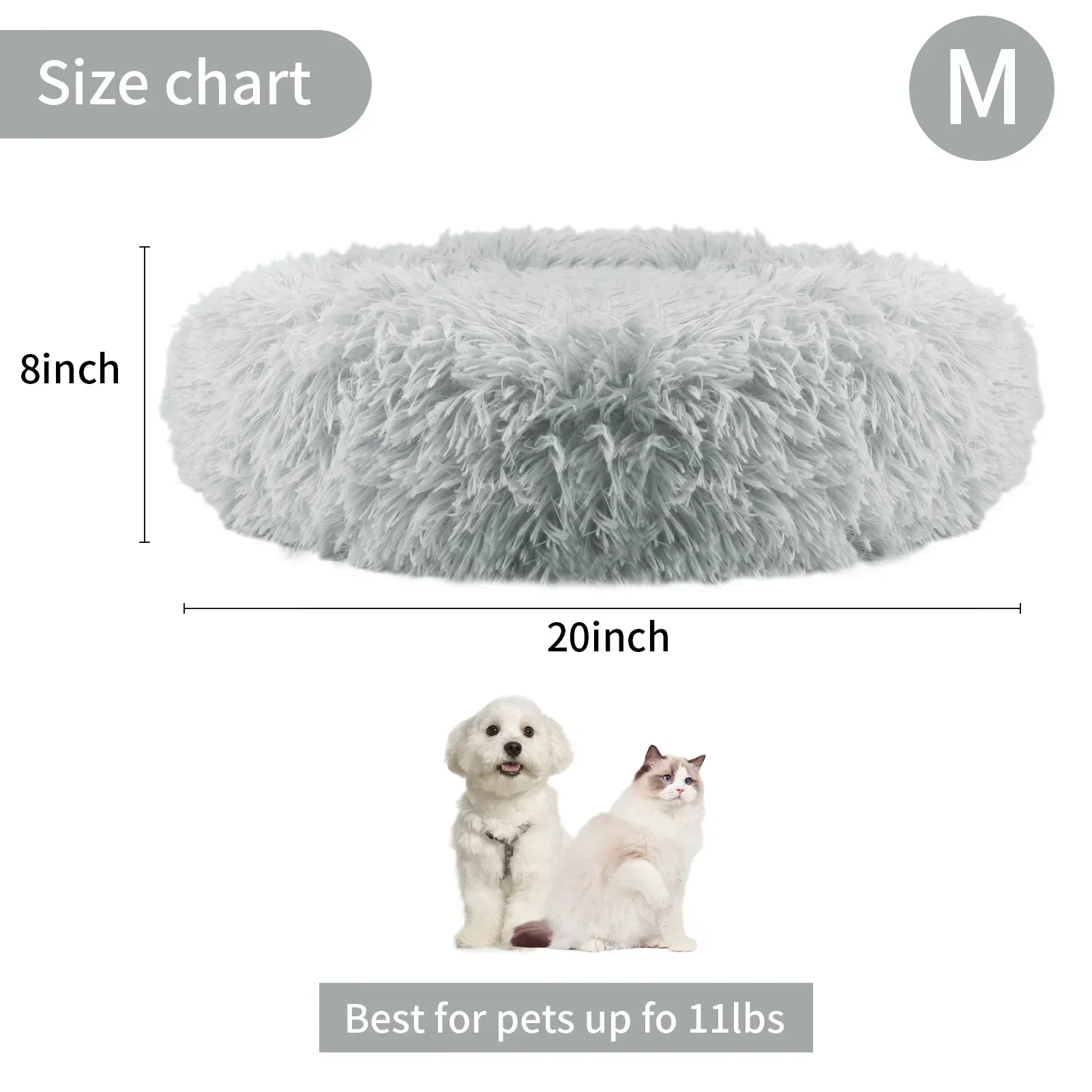 This dog donut cuddler bed has a circular design, surrounded by bulges around the cat, which is very suitable for pets who like to curl up. The dog round bed provides a full sense of security for your pet.
