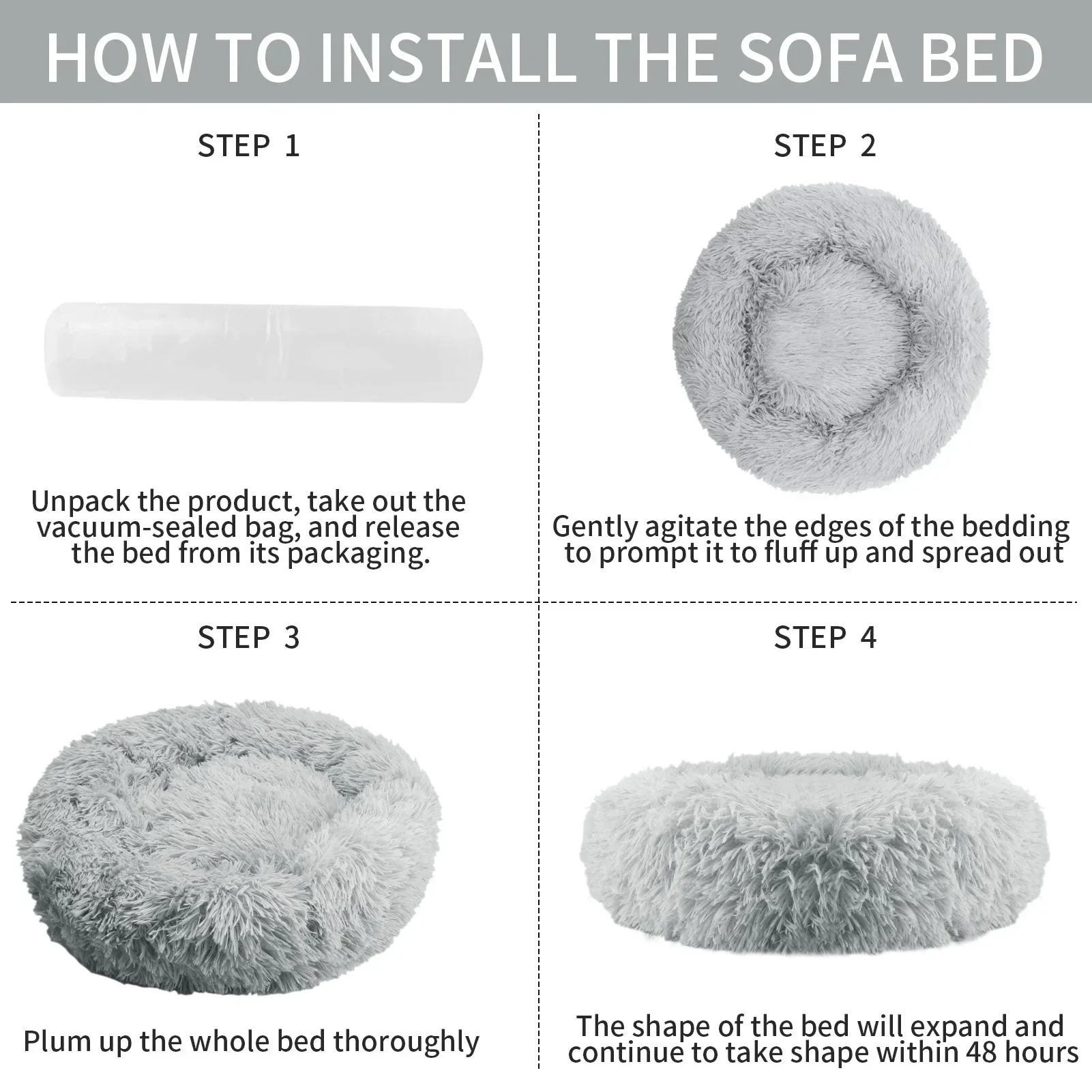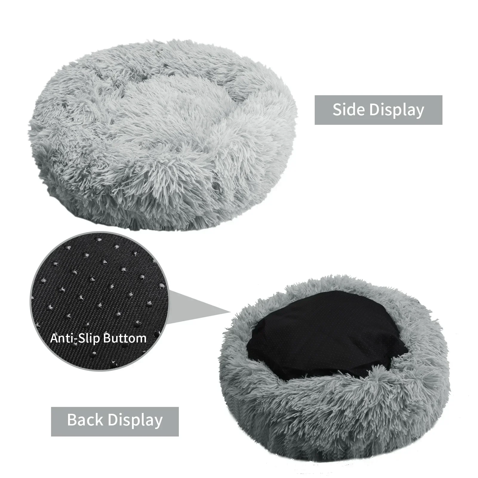 The pet calming dog bed is made of durable luxurious faux fur. The interior is filled with super-soft environmentally friendly PP cotton. It has always provided soft support for the pet, which relieves the pet muscle and joint pain