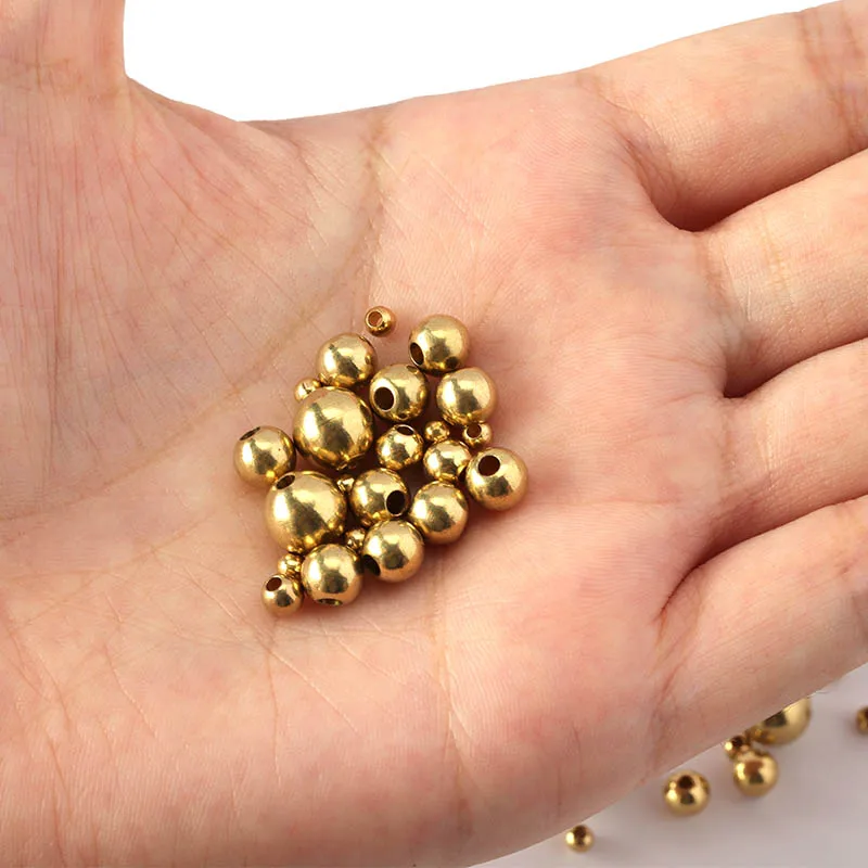 50pcs/lot 3/4/5/6/8mm Original Brass Spacer Beads Ball Loose Beads for Charms Bracelets Necklace Jewelry Making Components DIY