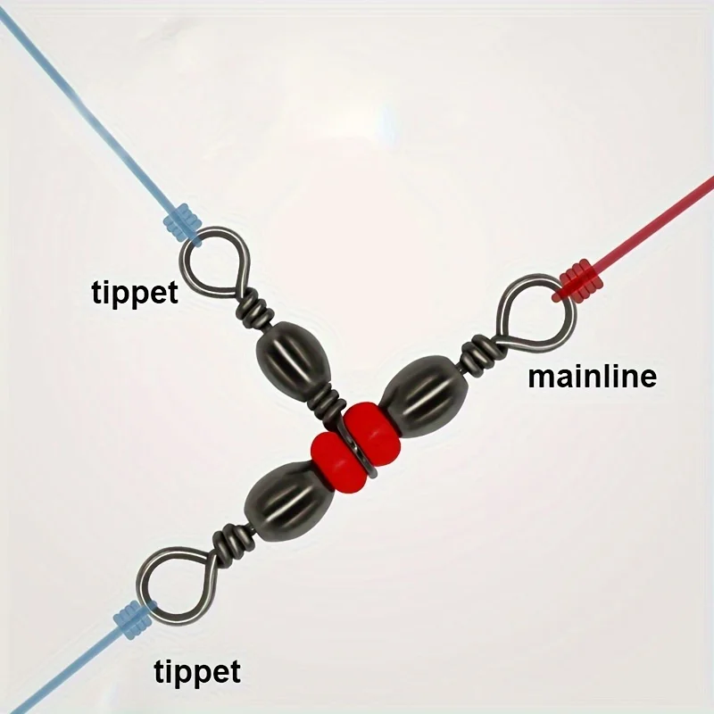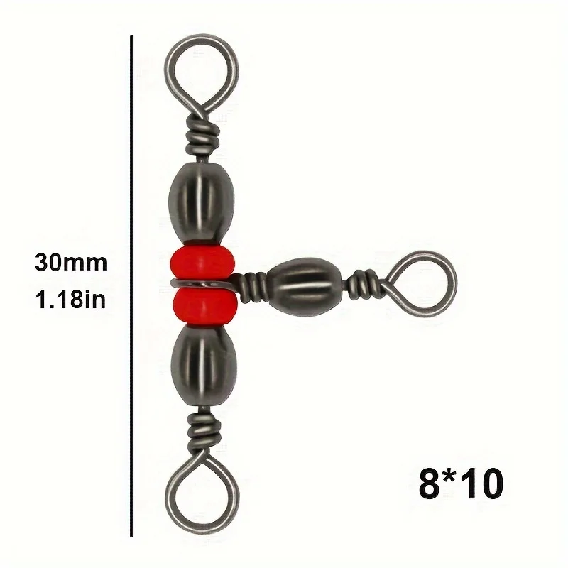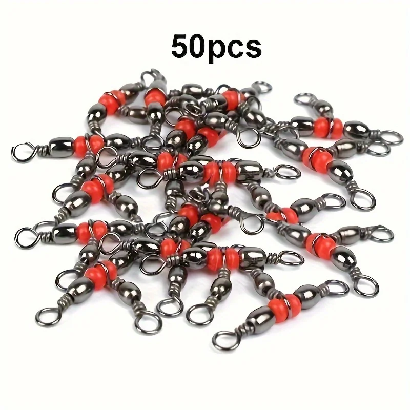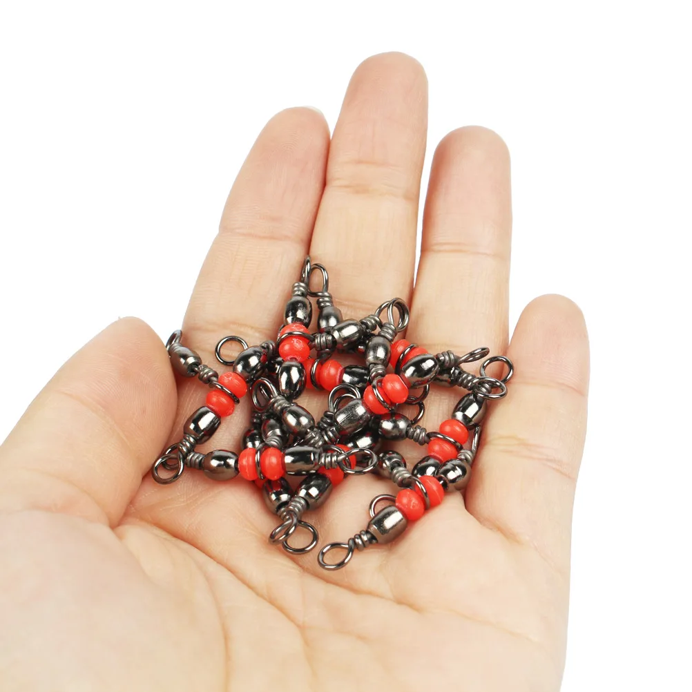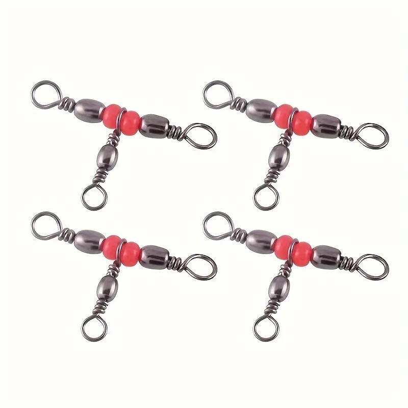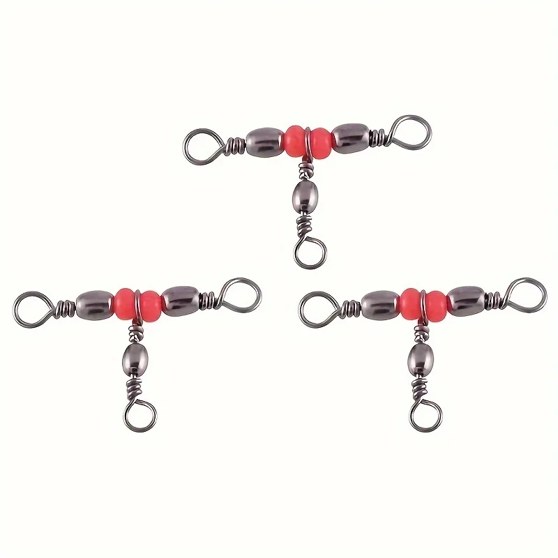 50pcs Fishing Connector Three Way Barrel Swivel Snap Ring With Beads For Fishhook Lure Line Fishing Accessories