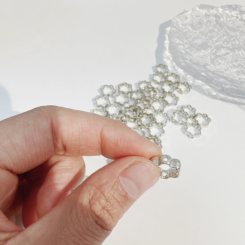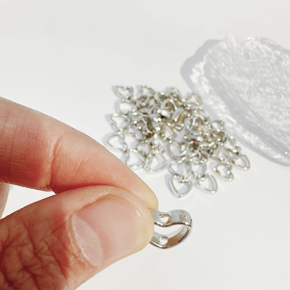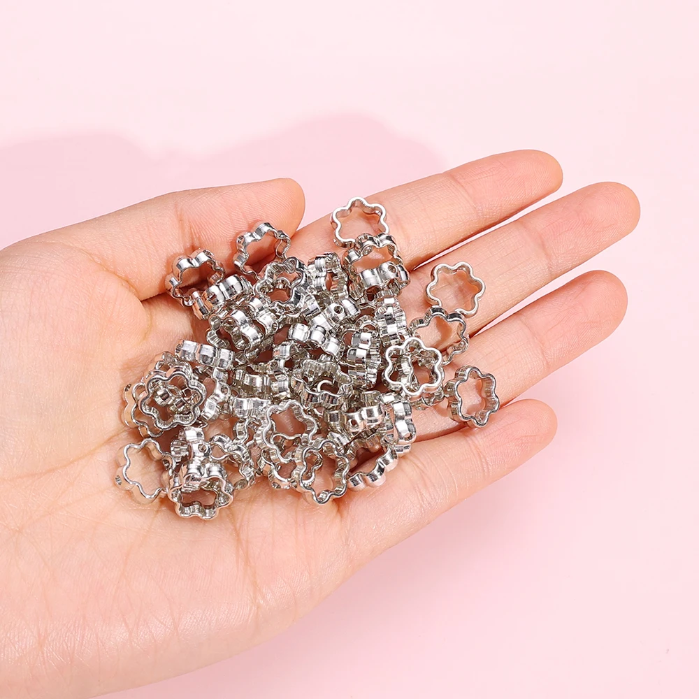 50pcs Silver Heart Hollow White K Loose Spacer Beads for Jewelry Making DIY Small Holes Necklace Bracelets Charms Accessories