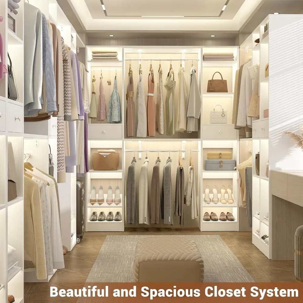 - 【Heavy Duty and Strong Closet Kit】 The walk in closet system is very sturdy and durable. It is made of heavier and thicker wood with 2 closet towers, and the hanging rods and wood shelves are solid, which has an excellent load bearing capacity up to 1000 lbs. It is great upgrade to those older wire closet organizers with better looking and design.