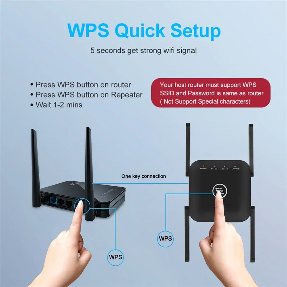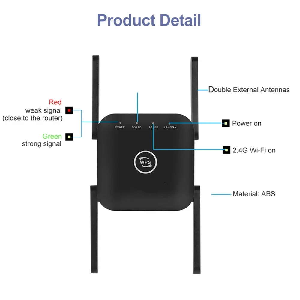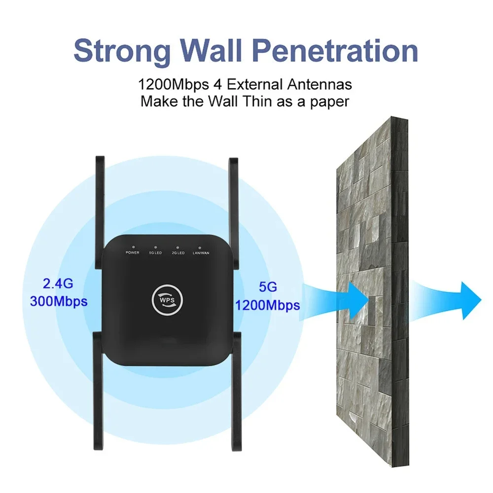 5GHz Wireless WiFi Repeater Wi Fi Booster Wireless Amplifier 1200 Mbps 5 ghz Signal Long Range Wi-Fi Extender