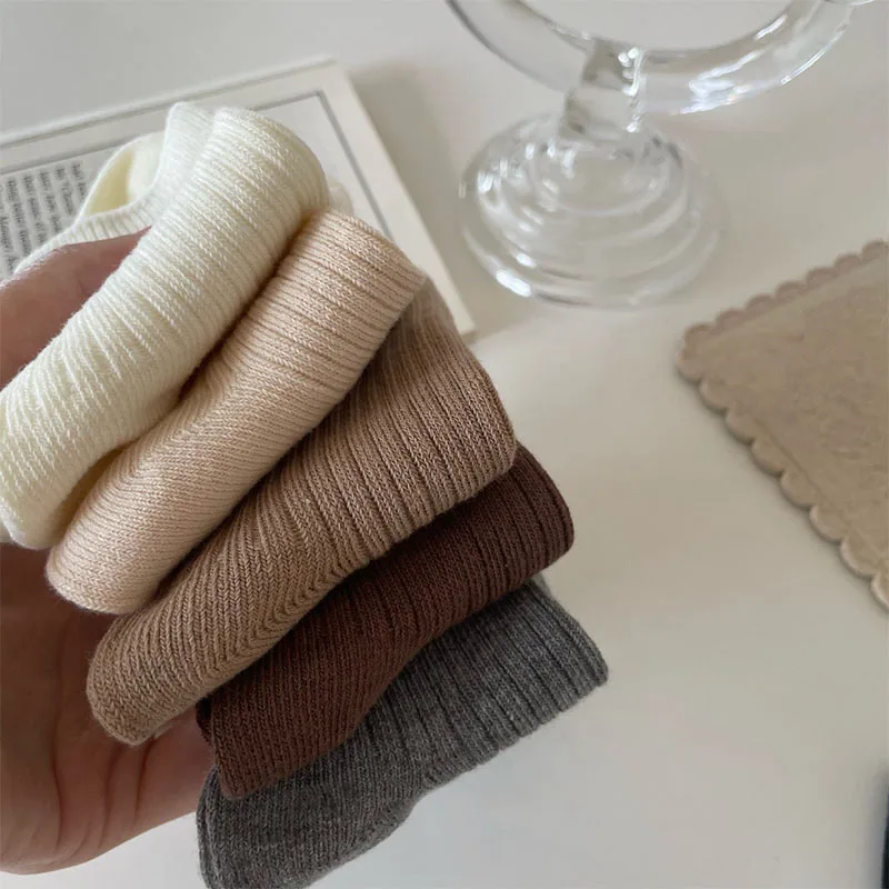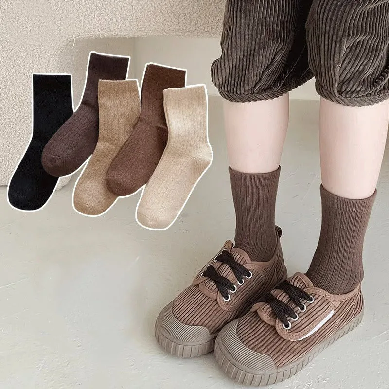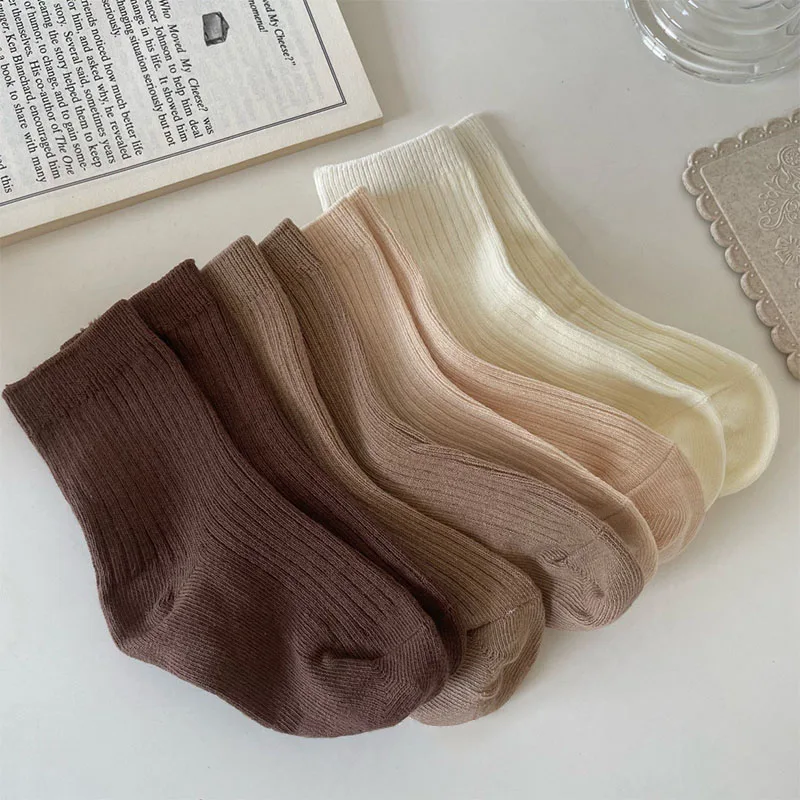 5Pairs/lot Retro Kids Socks Casual Baby Girls Boys Soft Breathable Cotton Stripe Autumn Toddler Knitted Children Socks for 1-8Y