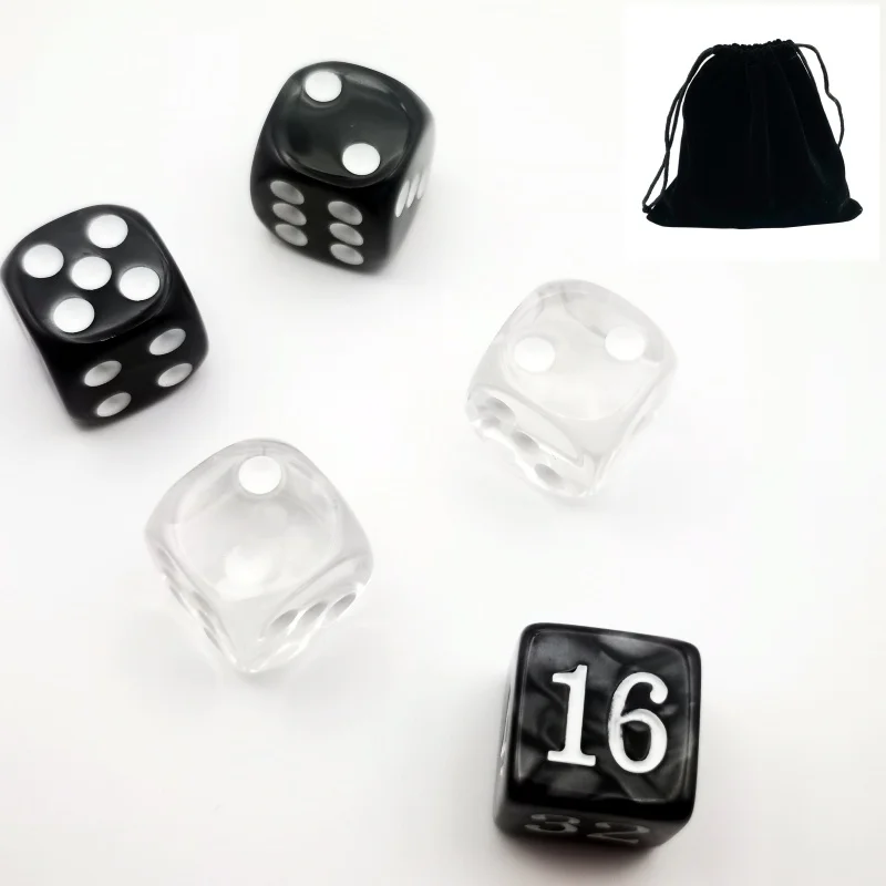 5pc/lot D6 Dice 6 Faces Dice Luck Lab Backgammon Game Dice Acrylic Dice D6 16mm Casino Dice DND Dice
