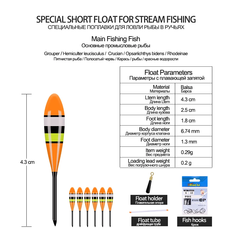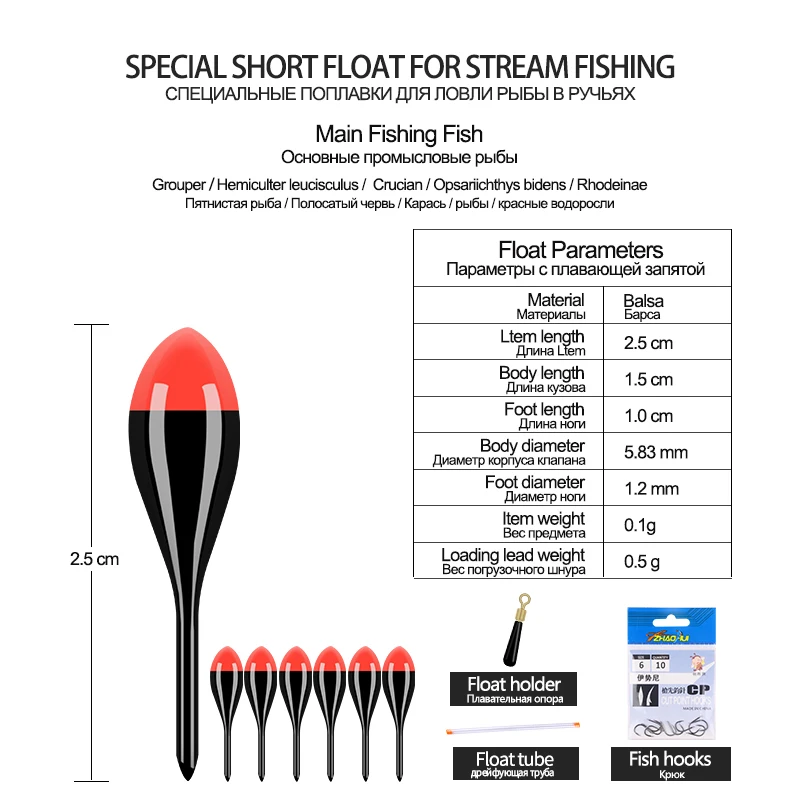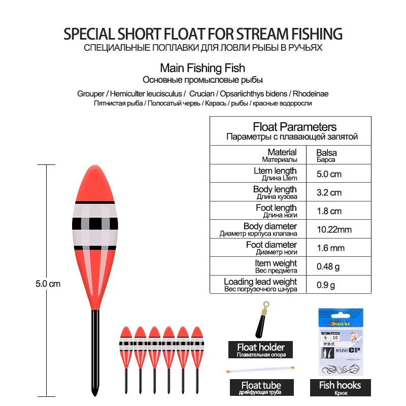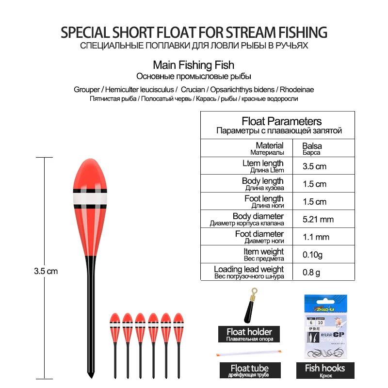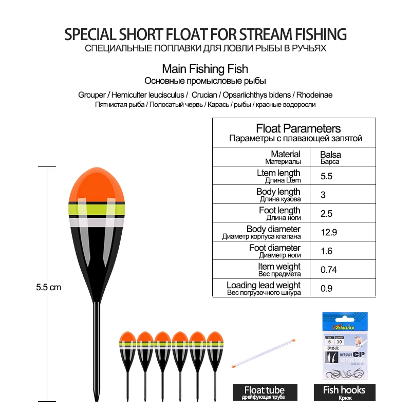 5PCS Balsa Fishing Floats+1 Bag Hooks+1 Float Tube+1 Float Rest Stream River Small Fish Buoy Shallow Water Bobber Fishing Tool