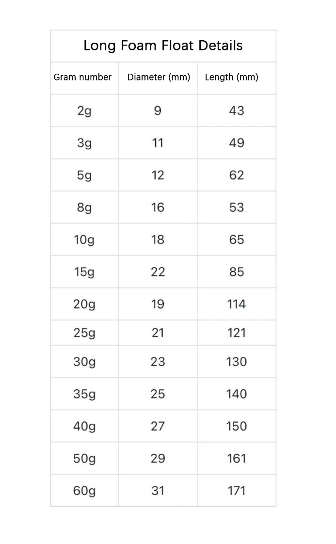 The long float is made of plastic and has a shape similar to a long strip. They are usually used for seawater fishing, especially for bass and snapper fishing