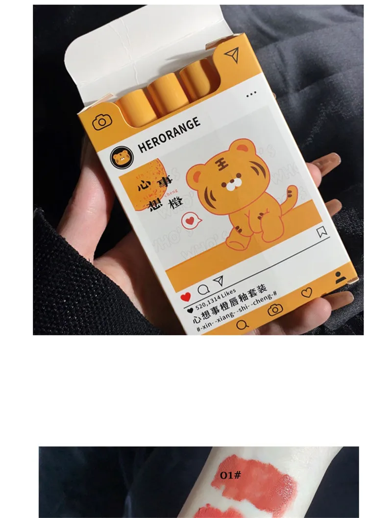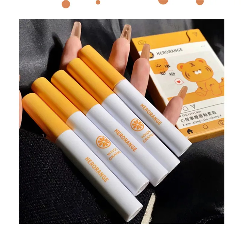 5Pcs Cartoon Cigarette Lipstick Set Long Lasting Moisturizing Lip Glaze Matte Velvet Waterproof Non-stick Cup Lip Gloss Cosmetic