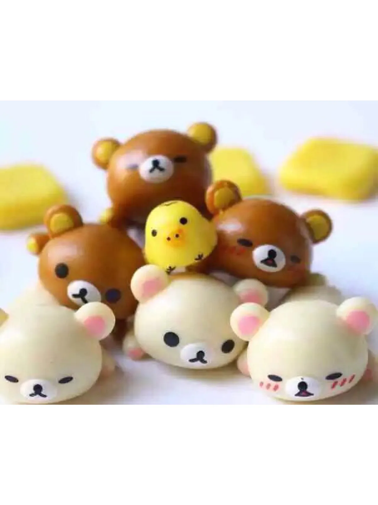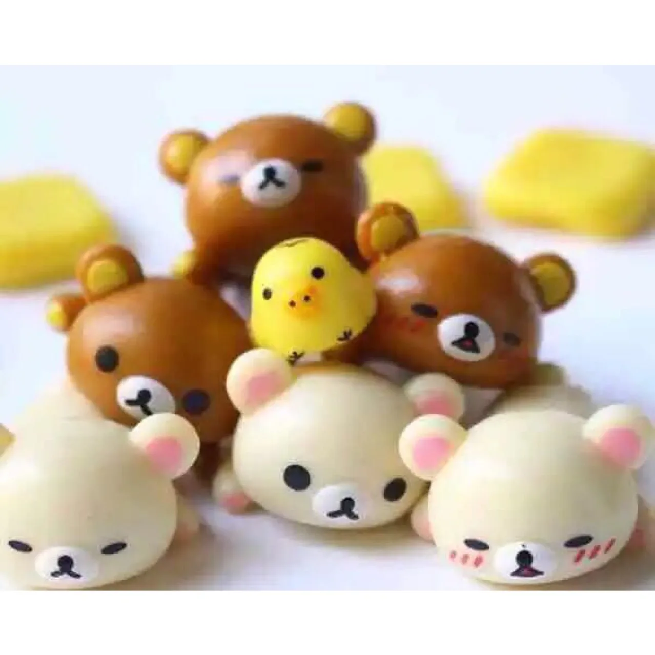 5pcs Cartoon Kawaii Bread Bear Cute Little Yellow Chickek Figures Action Cartoon Collection Kids Toy Gift