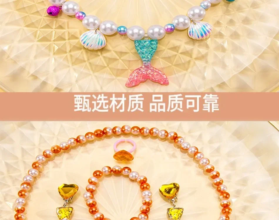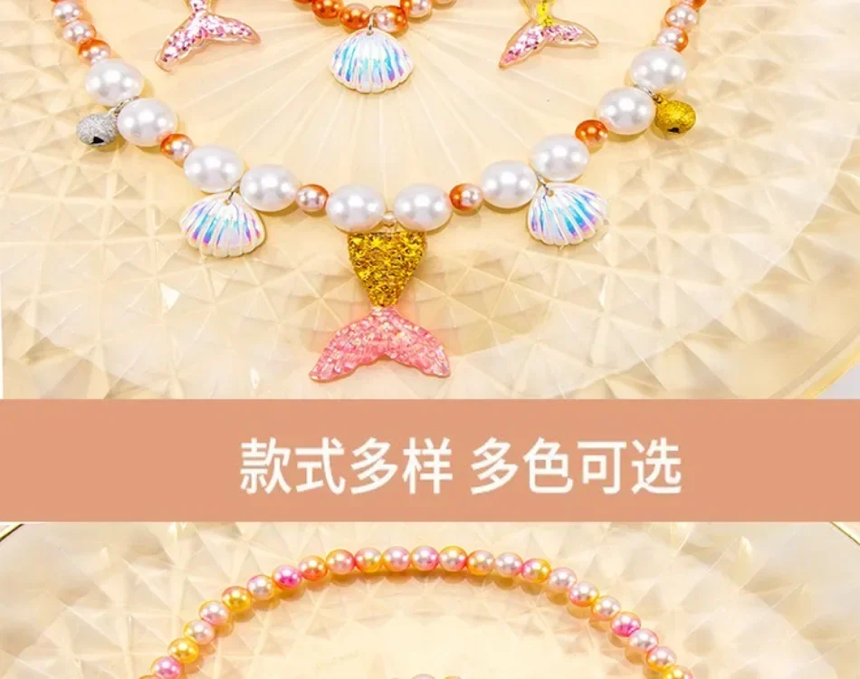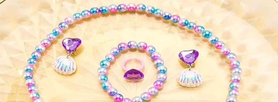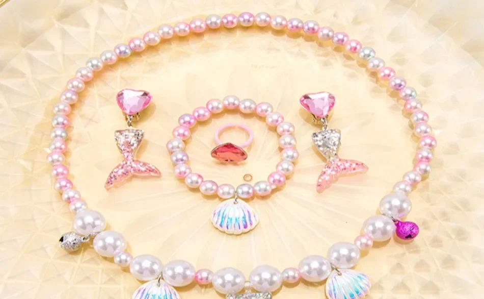 5pcs Girls Jewelry Sets Mermaid Pearl Necklace Bracelet Ring Earring Set Kids Toy Children Princess Dress Up Fashion Accessories