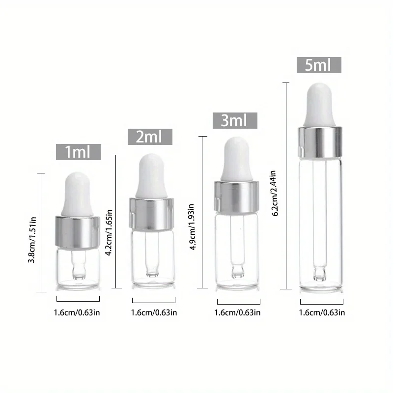 5pcs Mini Dropper Bottles Glass Empty Essential Oil Aromatherapy Bottles 1ml 2ml 3ml 5ml Rose Gold Cap Pipettes Bottles