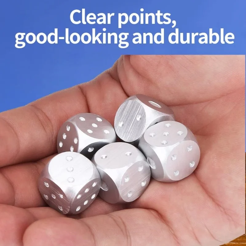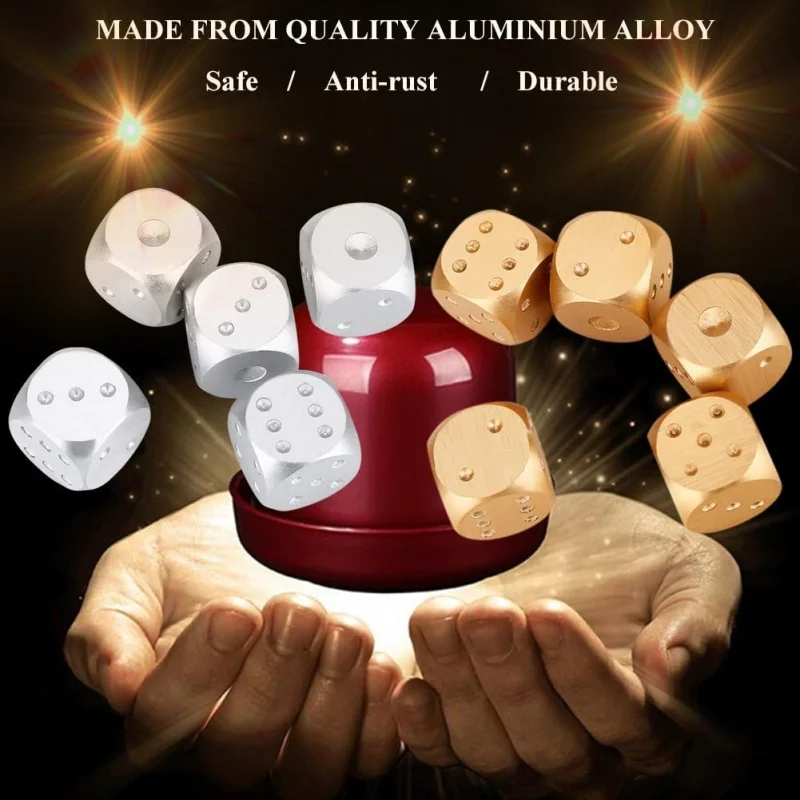 5pcs Precision Aluminum Alloy Dice with Box Dominoes Game Camping Poker KTV Bar Party Props Dices Set Solid Metal Silver Gold