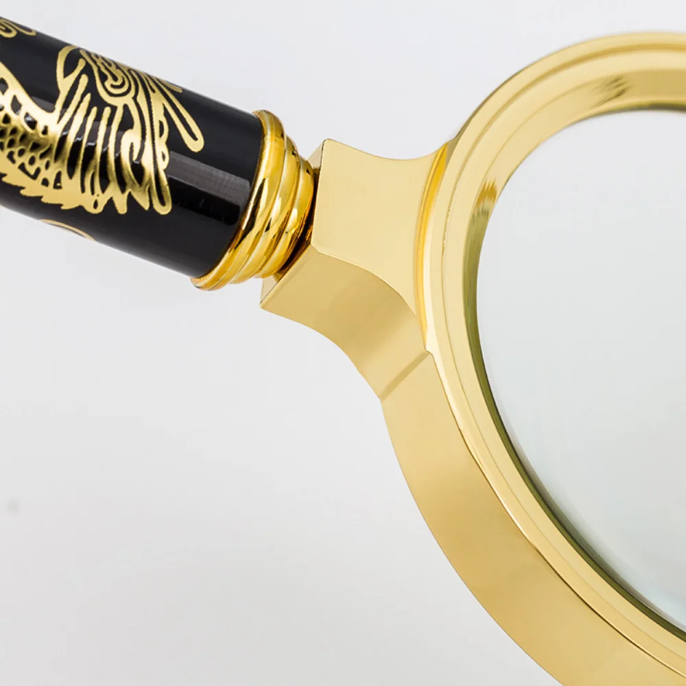 5X-10X Magnifying Glass Golden Dragon Handle Magnifier Mini Pocket Handheld Microscope Reading Jewelry Loupe Magnifiers