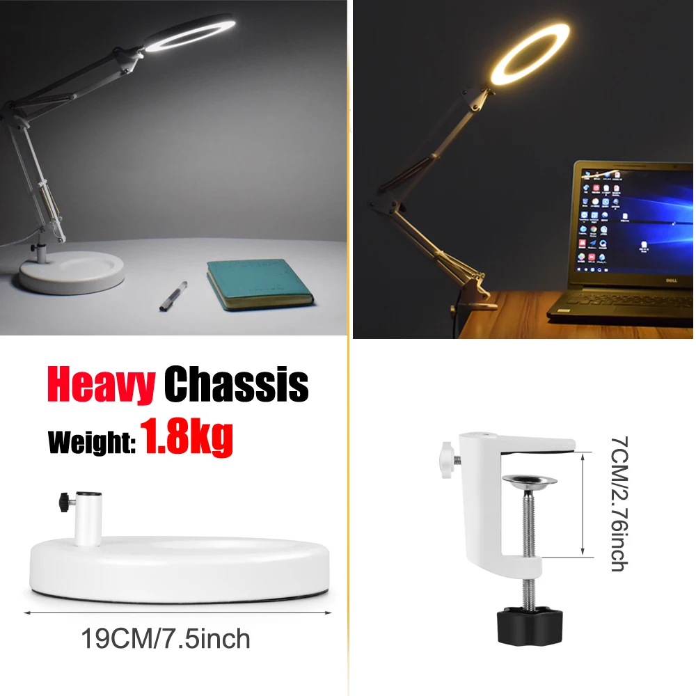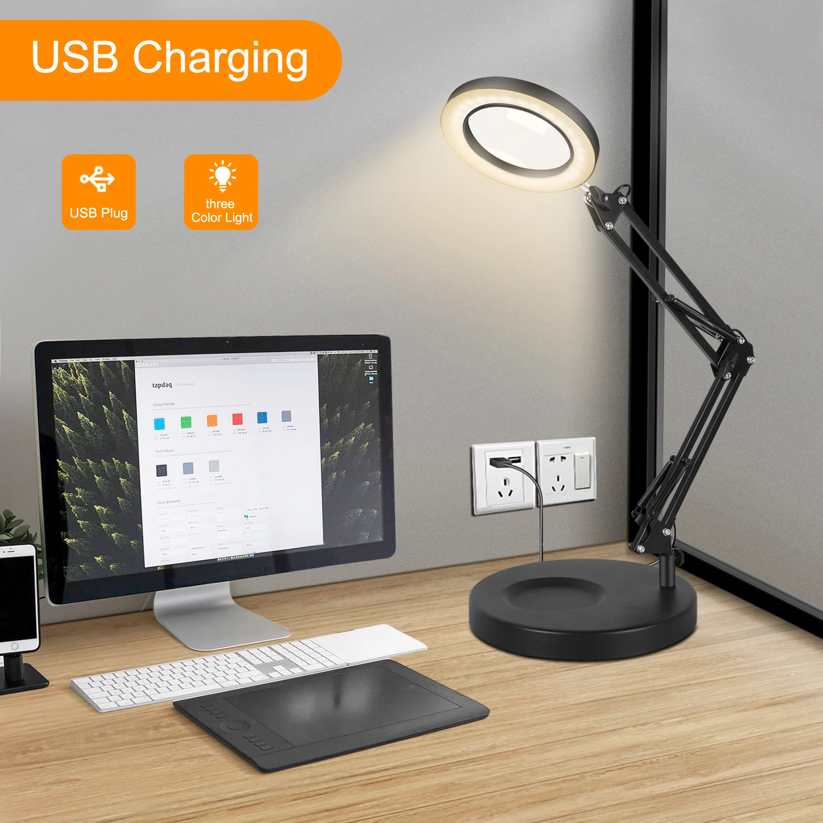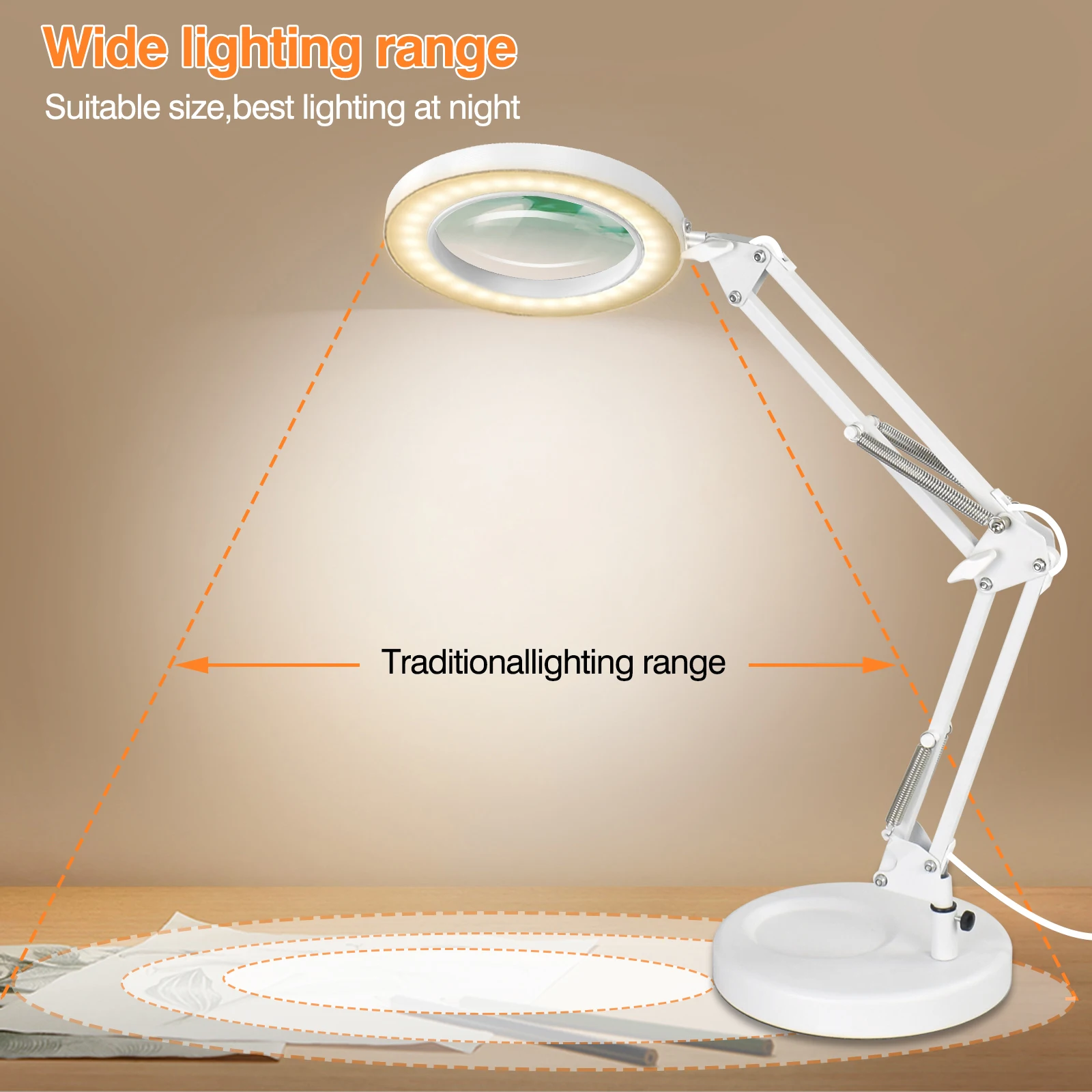 5X Magnifying Glass with Light and Clamp&Stand 5X Real Glass Lens Magnifying Desk Lamp 3 Modes Stepless Dimmable LED Lighted