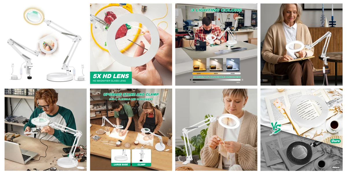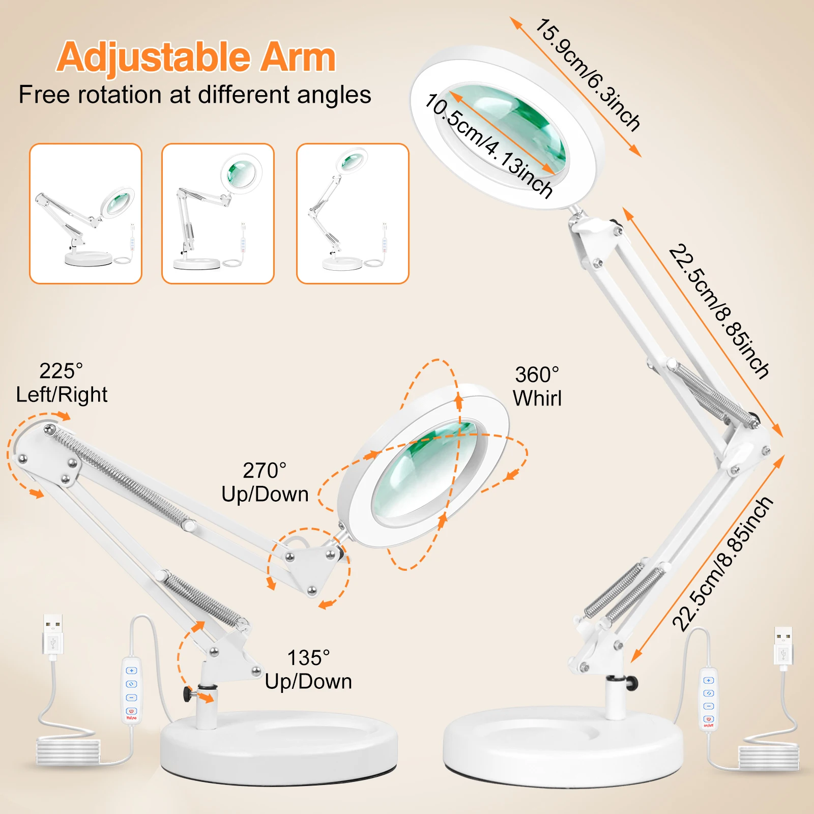 3. Magnifying glass with LED light, the color temperature of LED light can be adjusted in 3 steps and the brightness can be adjusted in 11 steps, it can meet various working environments.