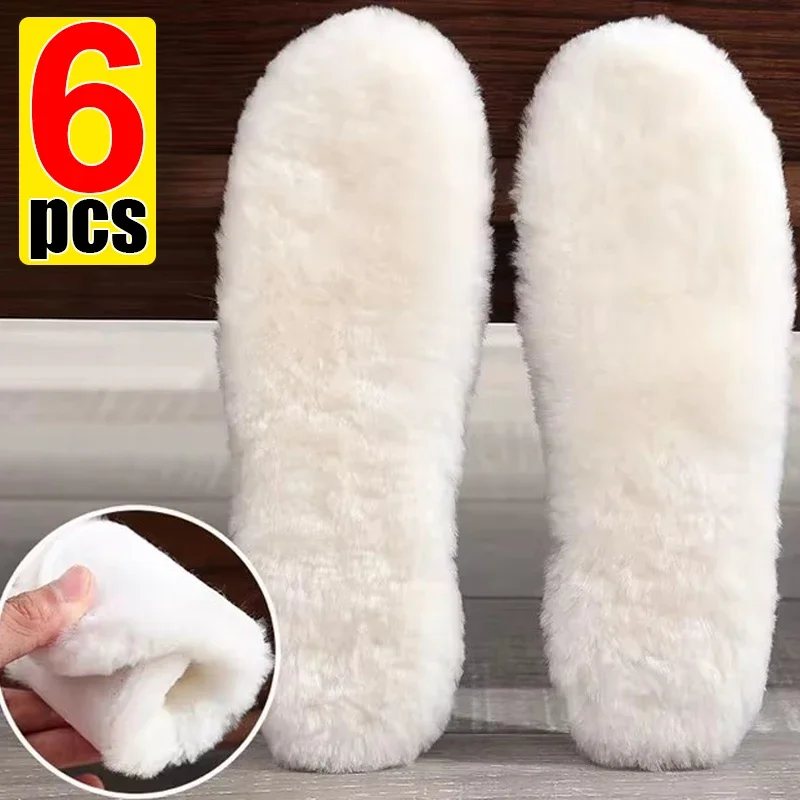 6/2pcs Australia Sheepskin Insole Men Women Winter Thick Cashmere Thermal Real Wool Insoles for Shoes Inner Soles for Snow Boots