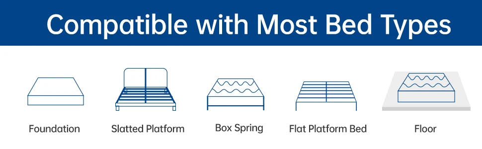 2-Our Gel Memory foam are suitable for all frames, such as box spring, floor, slatted base, flat platform or adjustable bed, hospital bed.