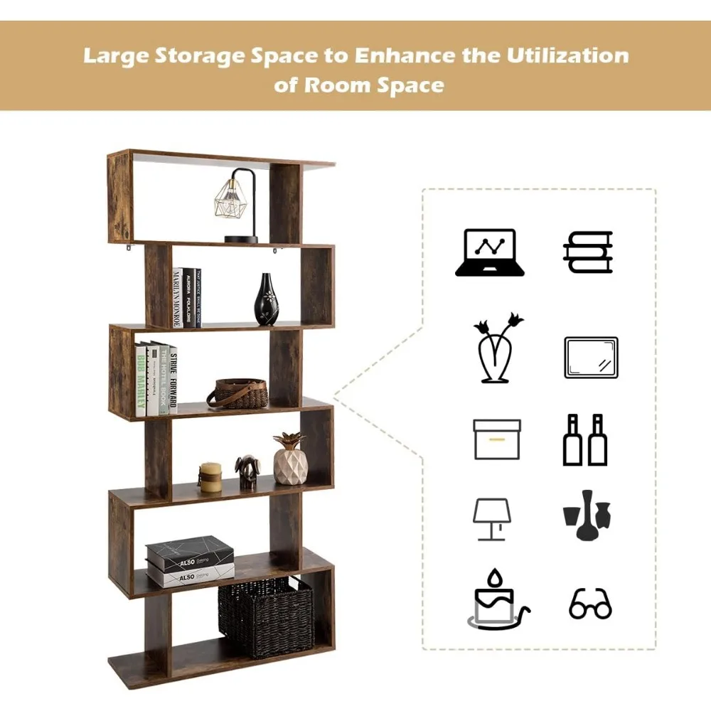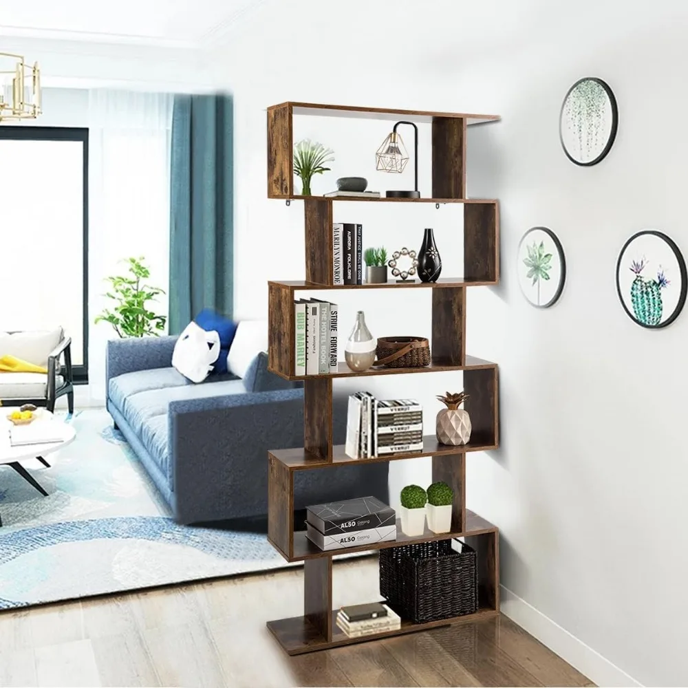 - Modern Open Shelving: This 6-tier bookcase features an open concept design with an S-shaped silhouette, offering ample storage space for books, decorative items, and collectibles.