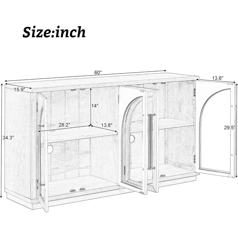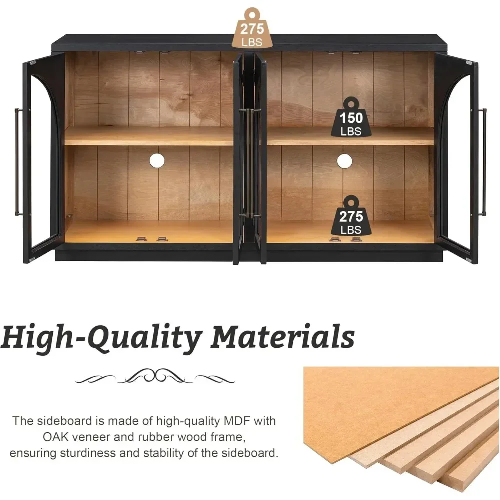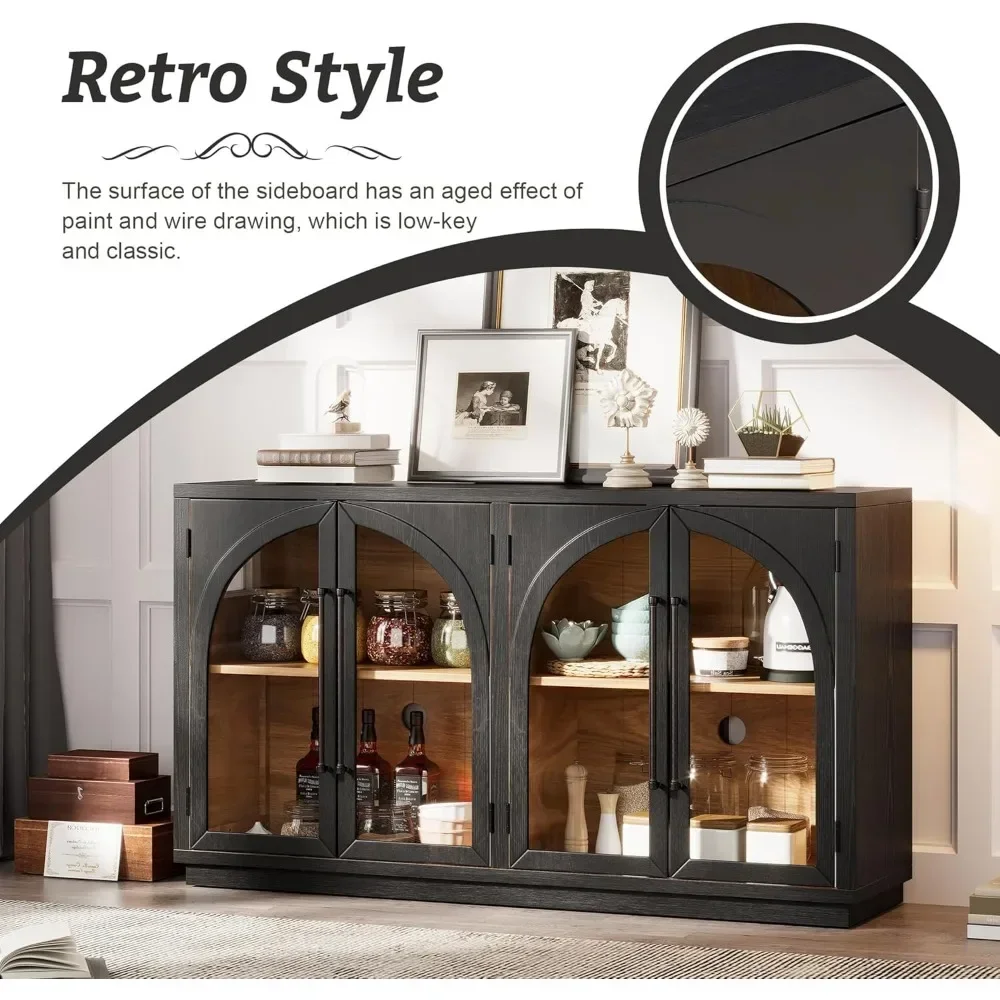 • ♬ 【Unique Design】Traditional retro style sideboard, very classic and discreet, makes your furniture look more natural and beautiful. The arched four-door cabinet design and superior glass material make this sideboard add uniqueness and personality. Equipped with four convenient and durable metal linear long handles, and a clear line on the board as opening the cabinet door, this sideboard is more beautiful and practical.
