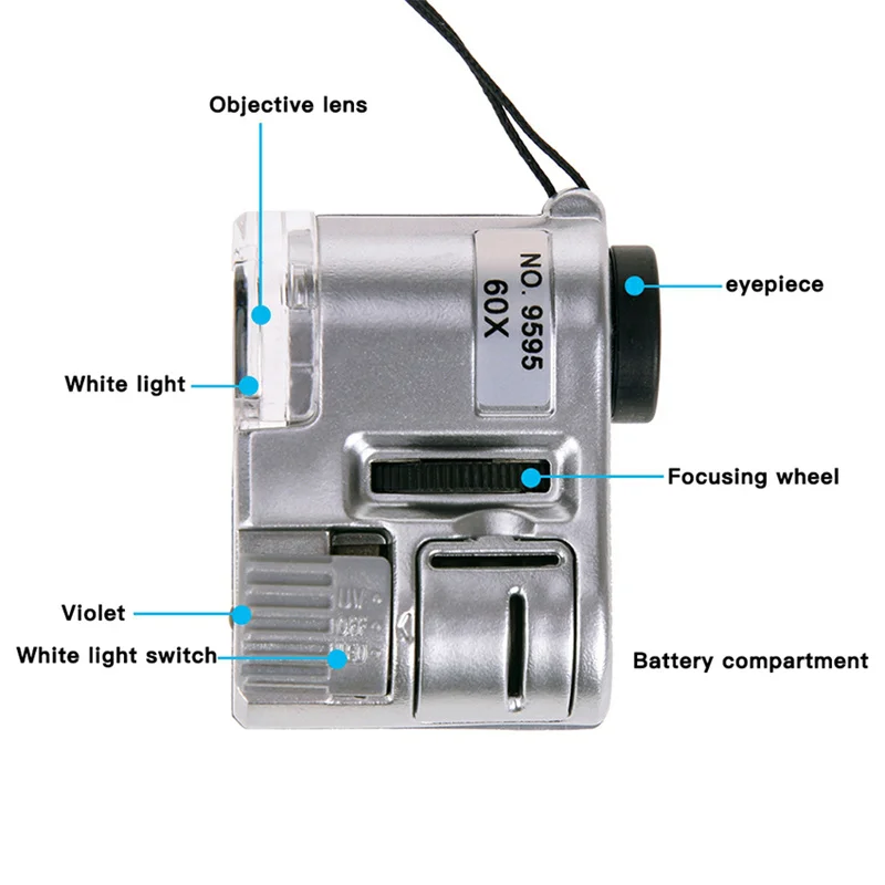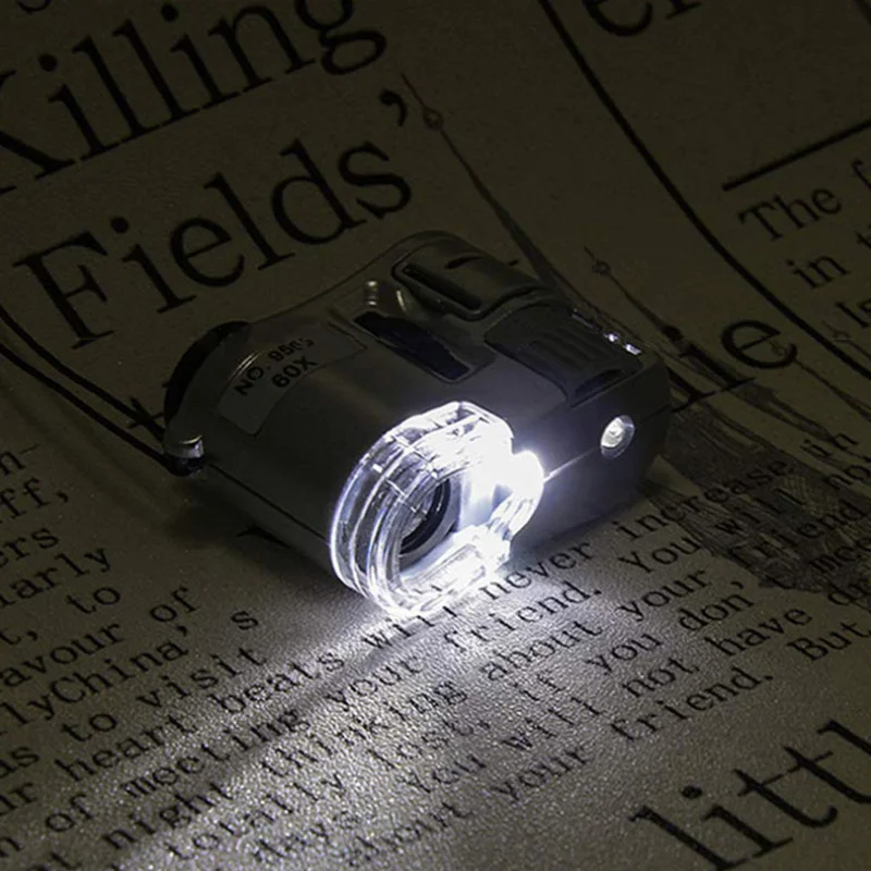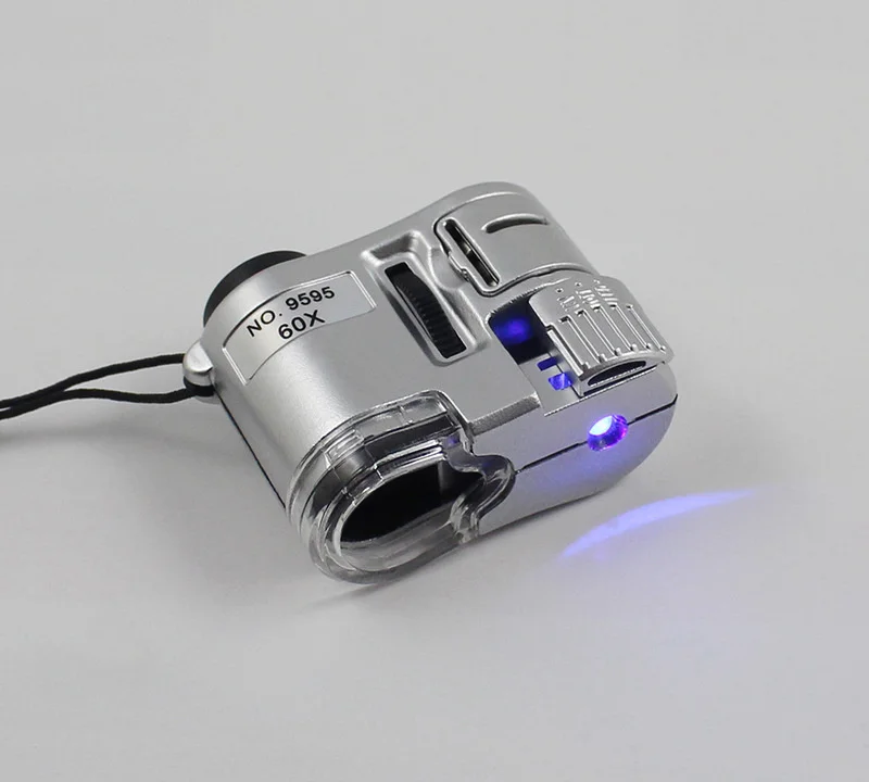 60X Handheld Magnifying Glass Mini Pocket Microscope Loupe Currency Detector Jeweler Magnifier With LED Light