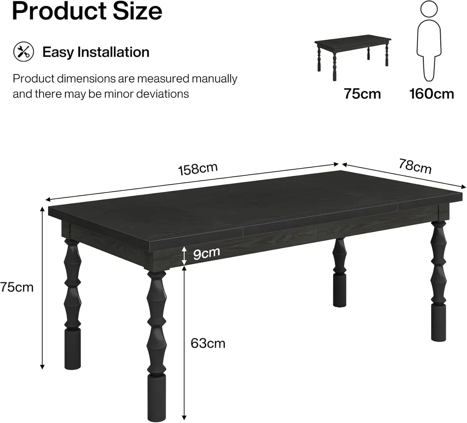 - Enjoy Dining Together: Our long dining table measures 62.20″ W x 30.71″ D x 29.53″ H, which can comfortably accommodate 4-6 people. Boasting ample space for displaying an array of tableware, sumptuous dishes, and elegant decorative elements, this large kitchen table perfectly caters to the needs of you and your cherished ones