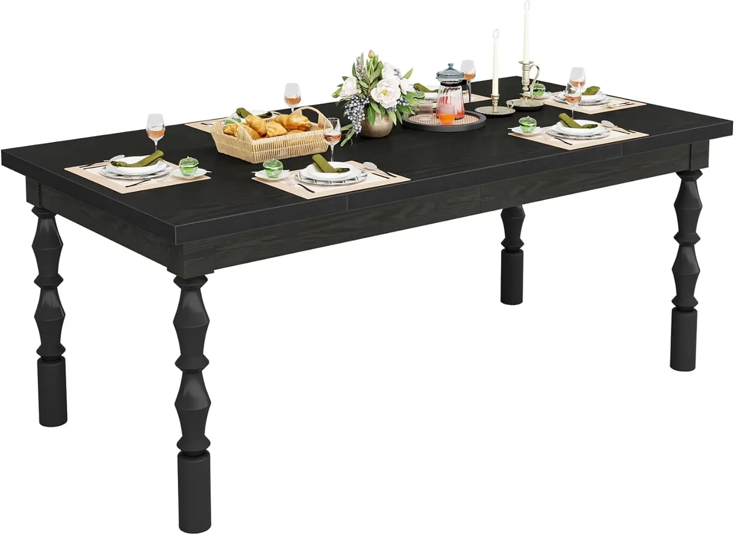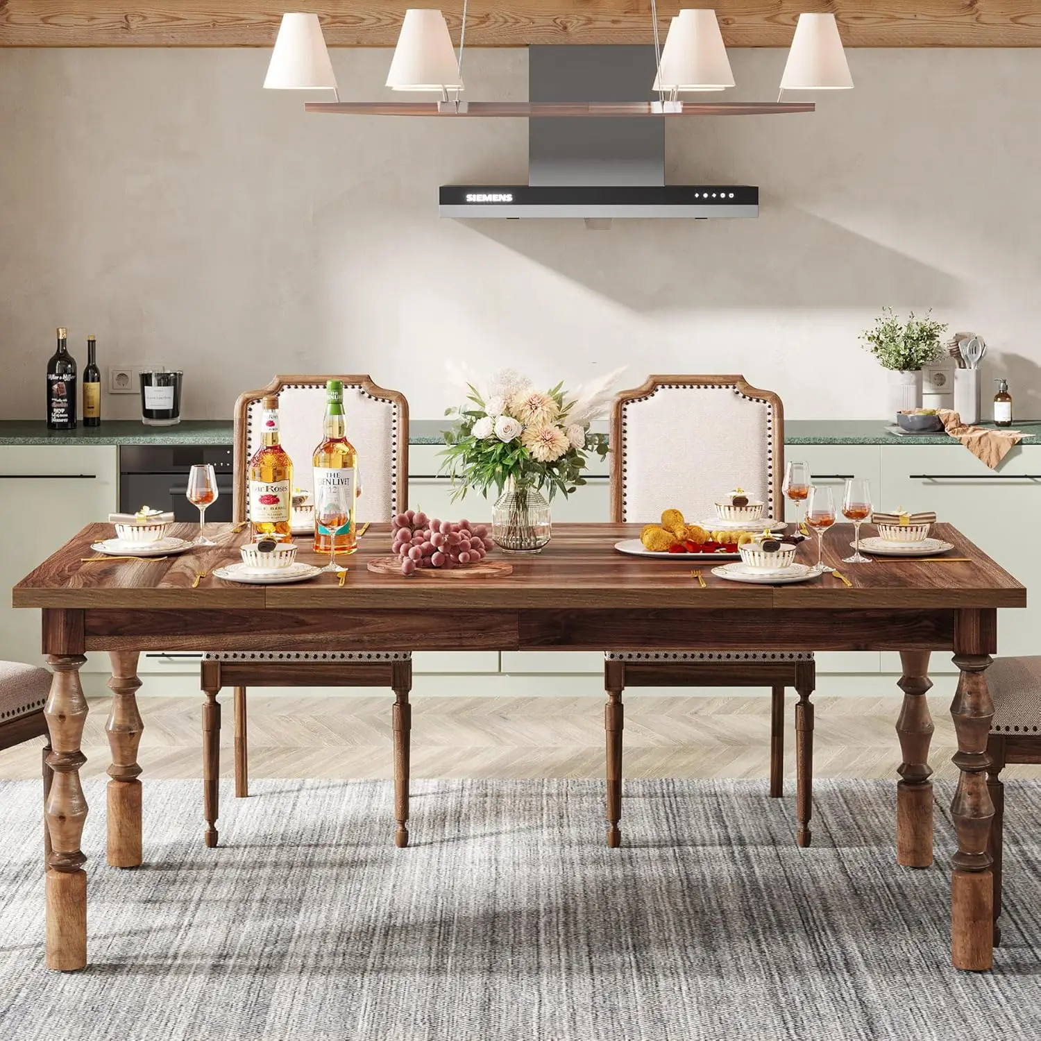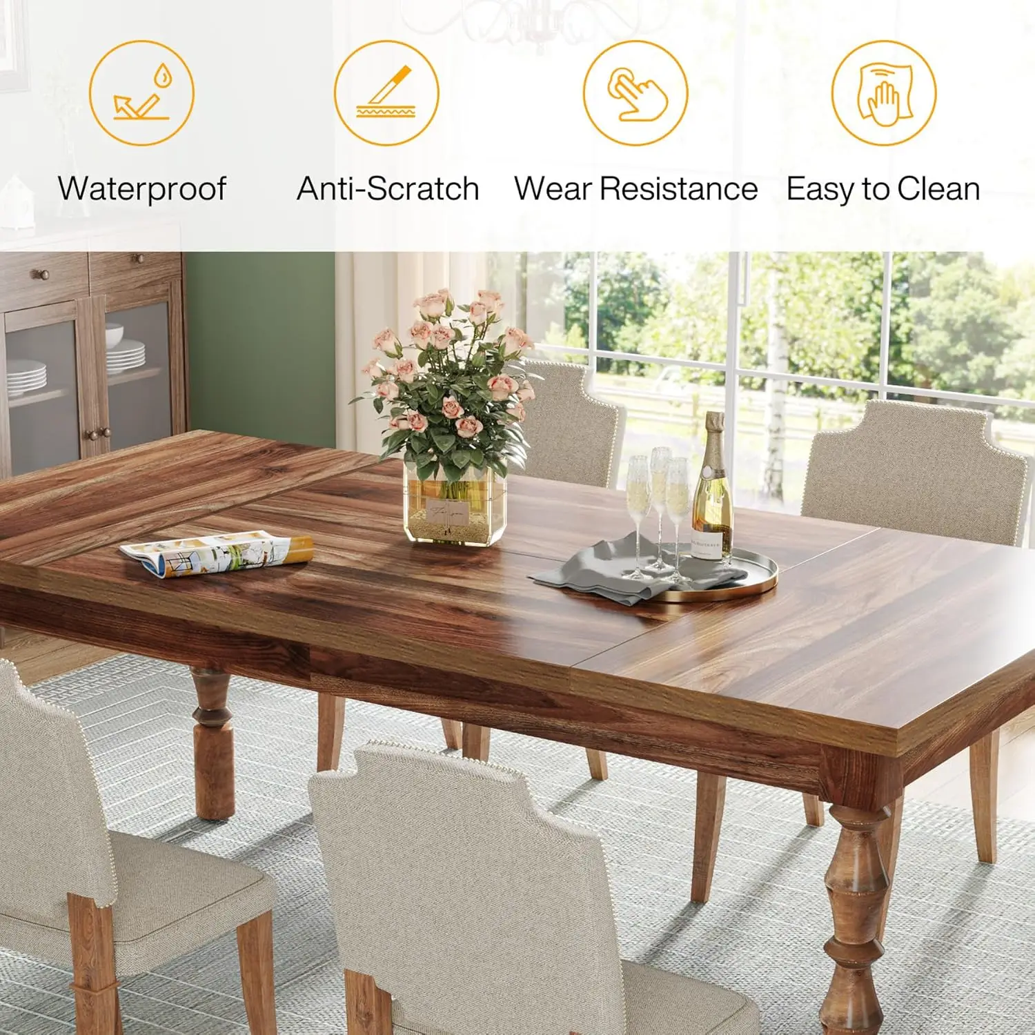 - Sturdy and Long-Lasting Structure: This wood dining table is composed of a thickened (1.18″) solid tabletop made from high-quality MDF and a heavy-duty frame with thickened (2.36″) table legs. Additionally, fortified by six reinforced boards tucked discreetly beneath the surface, this table ensures durability and an extensive lifespan