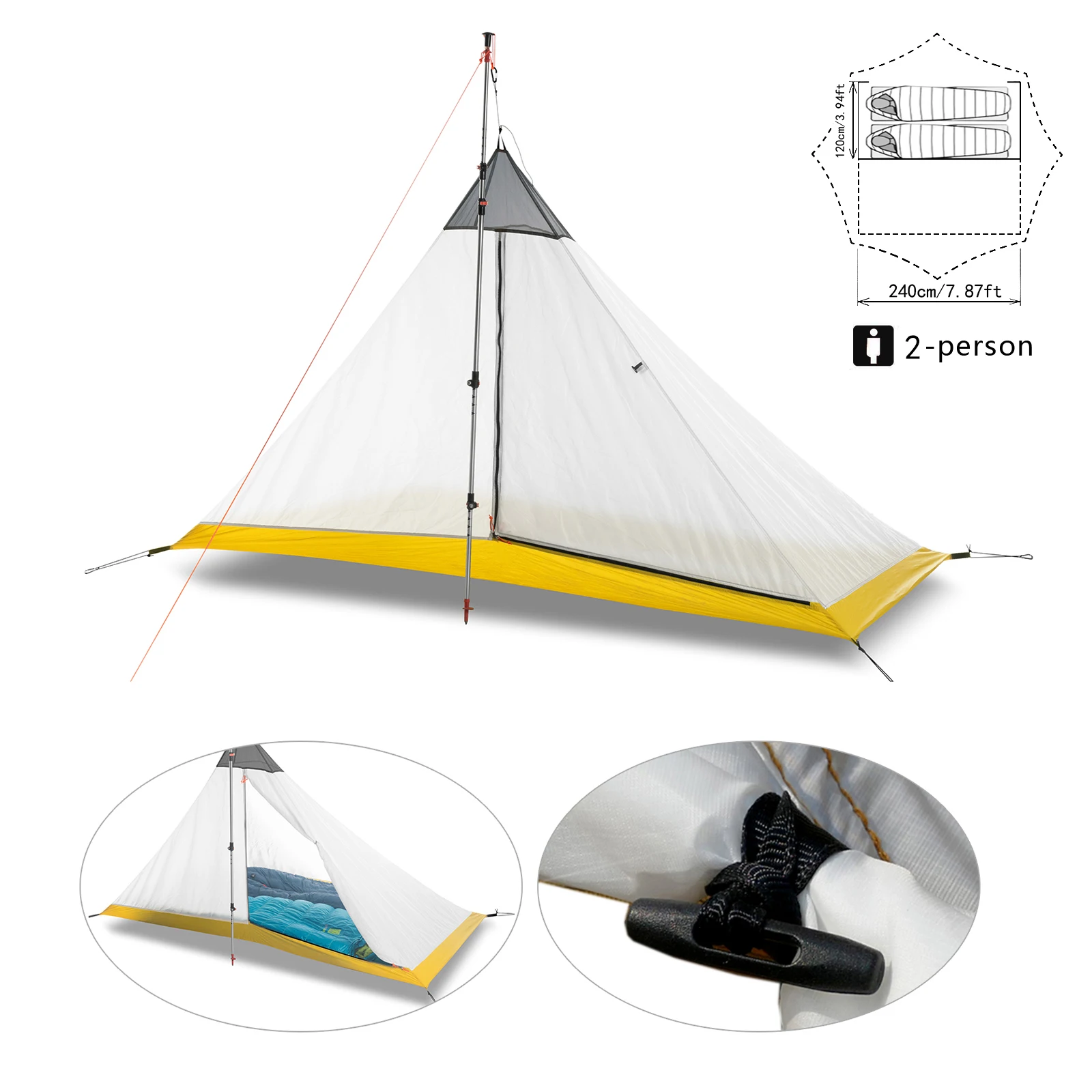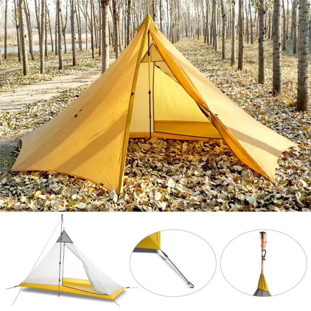 620g Ultralight 2 Person 40D Nylon Silicon Coating Inner Tent Outdoor 4 Seasons Camping Tent Rodless Pyramid Marquee Large Tent