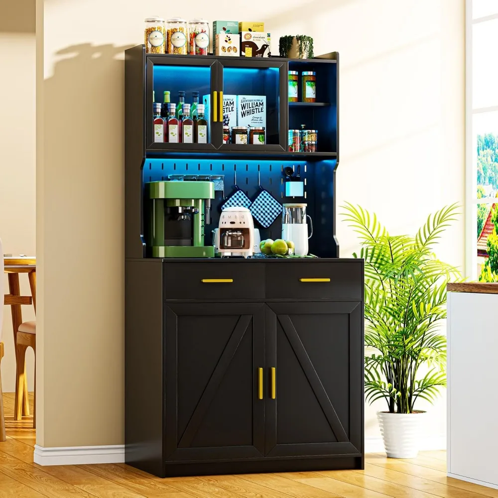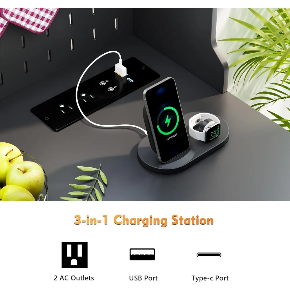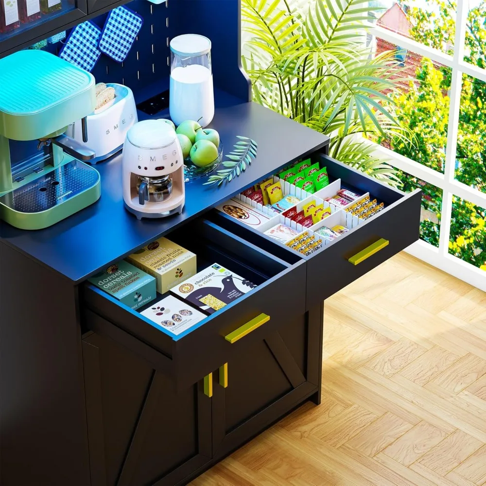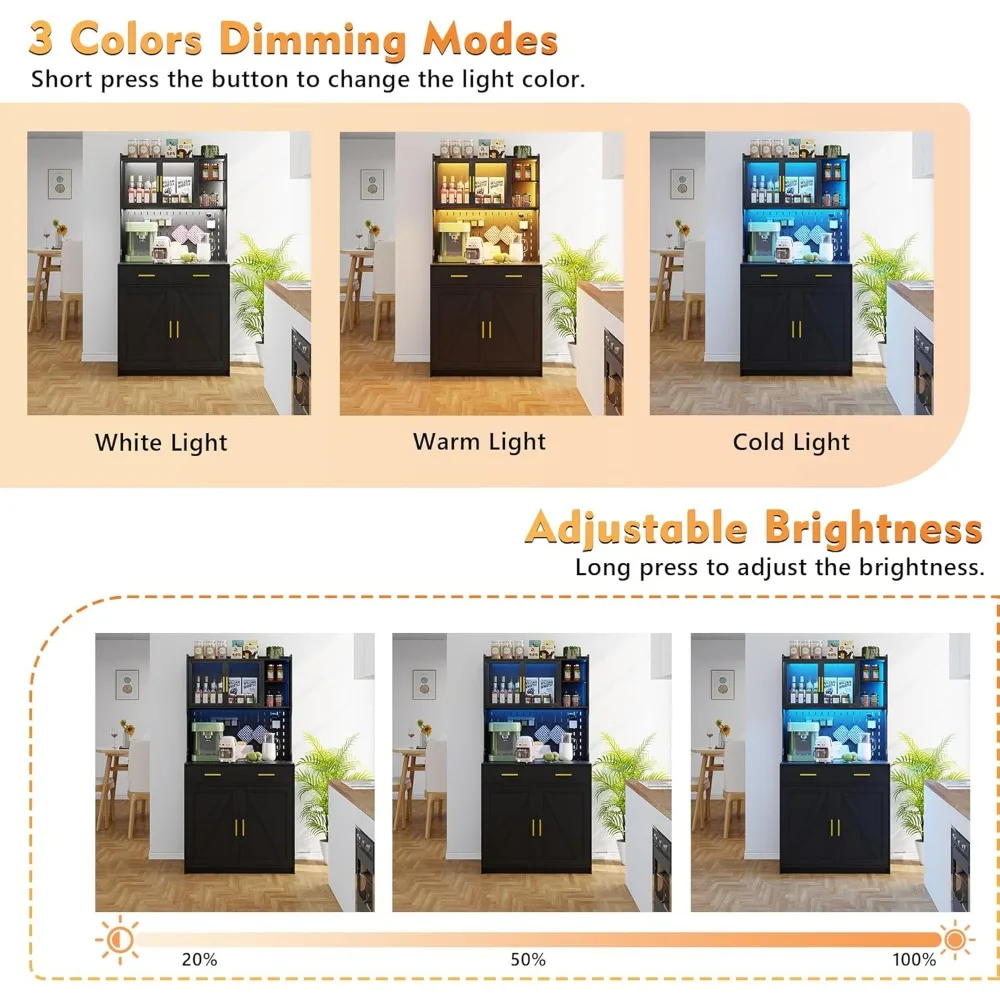 - 【3-in-1 Charging Station】 The kitchen cabinets is equipped with 2 outlets and 1 USB port and 1 type-c port. It’s easier to plug in your coffee maker,microwave ,toaster,that makes your countertop neater