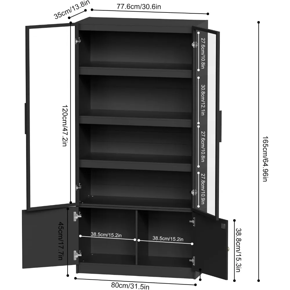 - 【Multifunctional Storage Cabinet】This storage cabinet with glass door measures 31.5″L x 13.8″W x 64.96″H. The multifunctional 5-layer storage rack has enough space to organize your belongings. It can be used as a bookshelf in the study, to display figurines in the game room, as a decorative home in the living room, as a bookshelf in the study or to display trophies, which is both practical and beautiful.