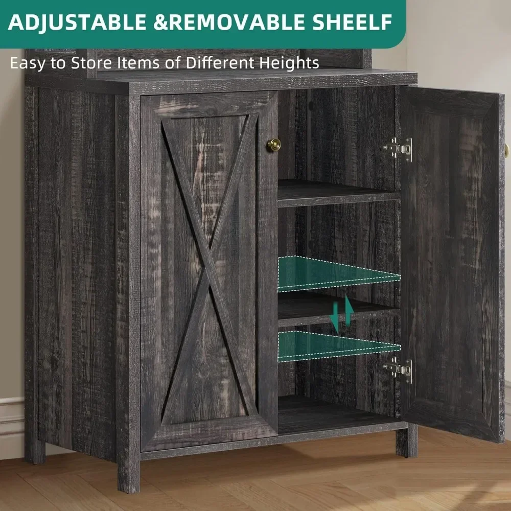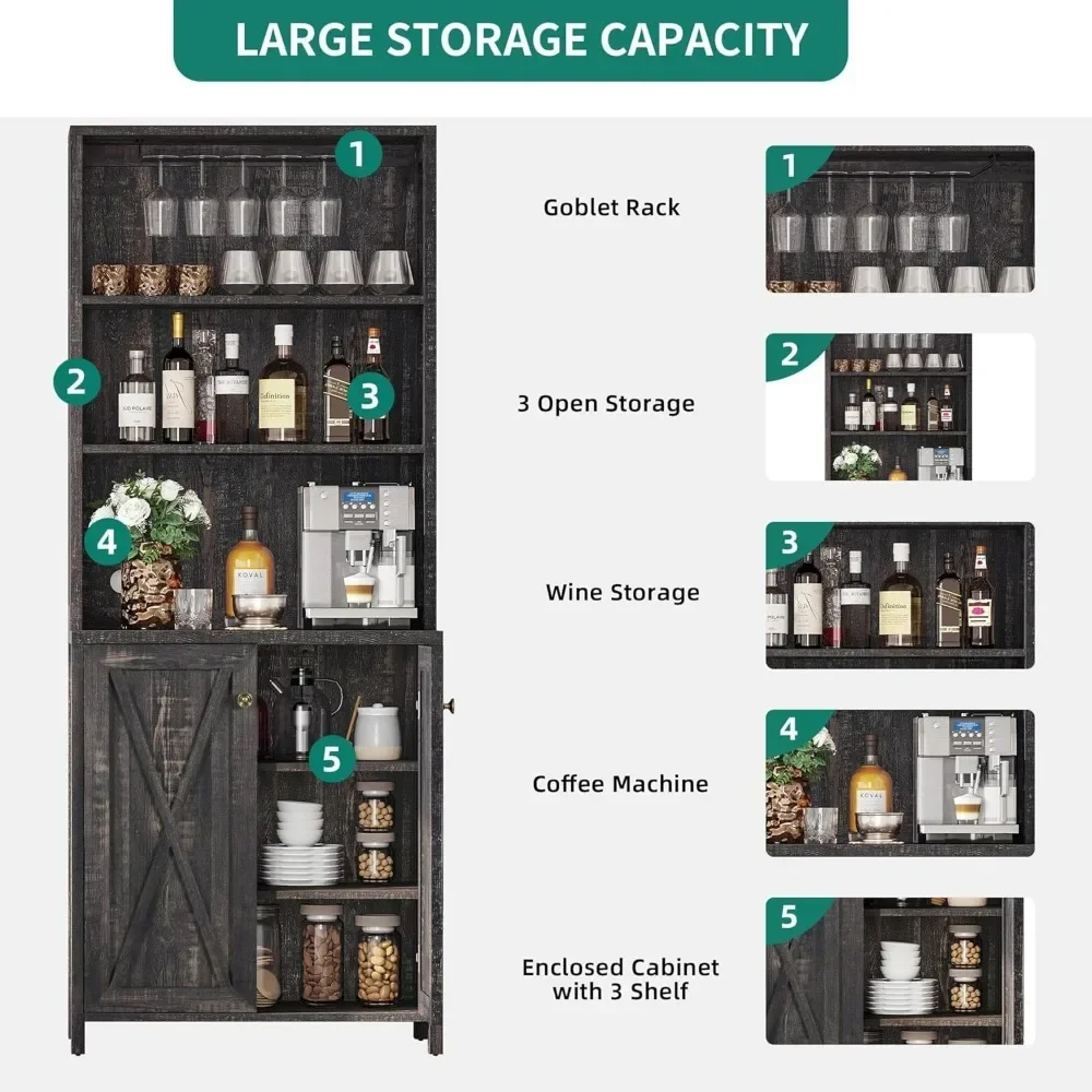 Multi-purpose: Featuring an exquisite mix of open storage shelves and cabinet with hidden 3-tier shelves, our YITAHOME tall bar cabinet functions as home bar, microwave stand, buffet, sideboard, coffee station, etc, meeting your various storage needs of kitchen, pantry, dining room, living room or bar