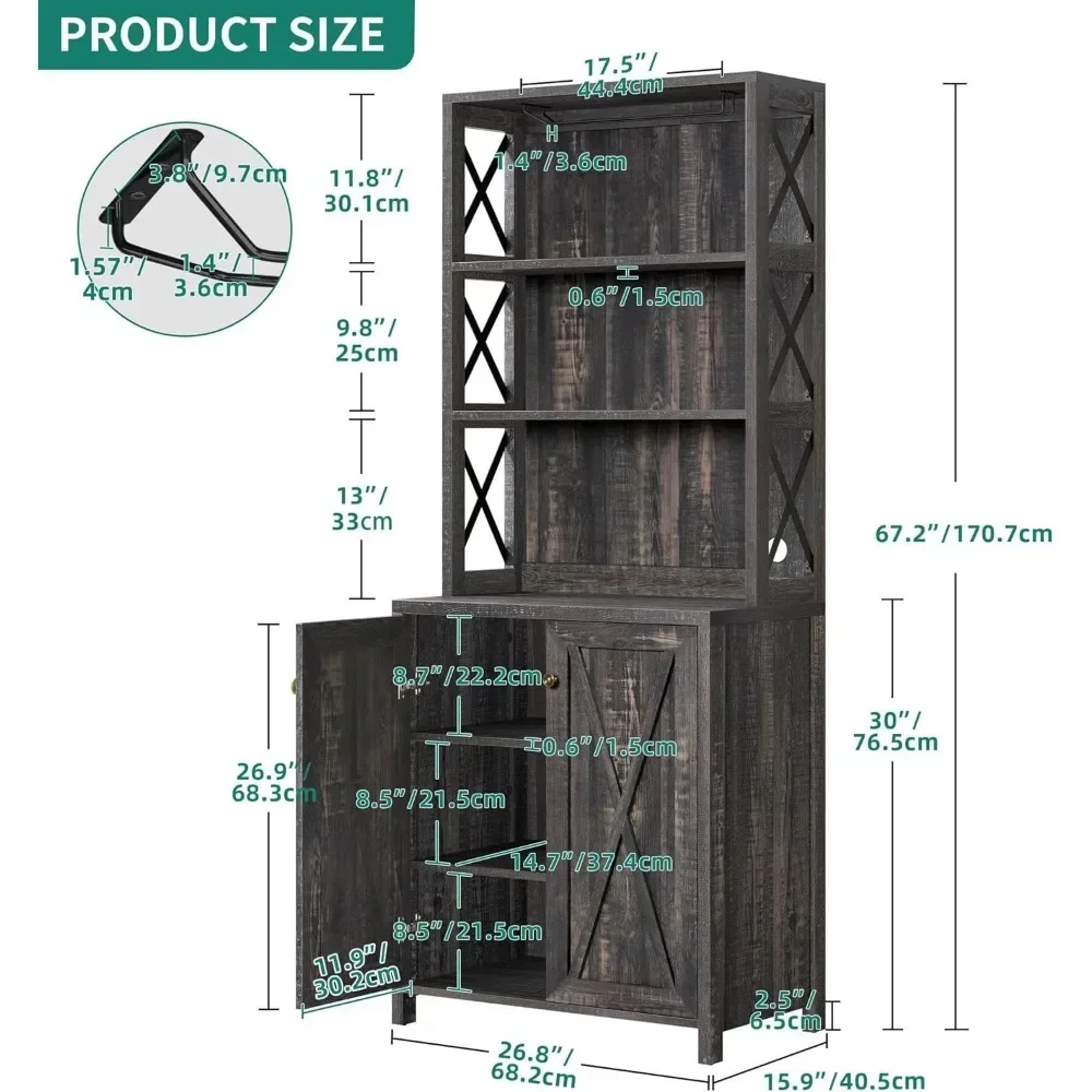 67″ Tall Wine Cabinet – Farmhouse Kitchen Storage with Wine Rack & Open Shelves