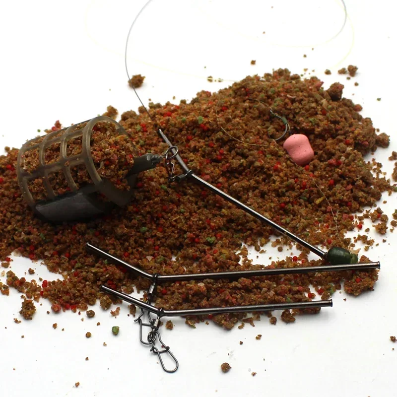 6pcs Carp Fishing Accessories Method Feeder Bait Cage Anti-tangle Leger Booms With Hook Snap Swivels For Fishing Cage Tackle