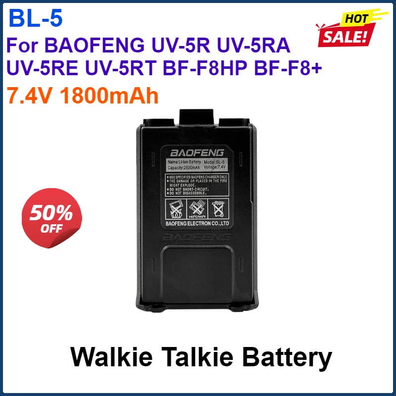 7.4V 1800mAh BAOFENG UV-5R Li-ion Battery BL-5 Rechargable Battery For UV-5RA UV-5RE UV-5RT BF-F8HP BF-F8+ Walkie Talkie