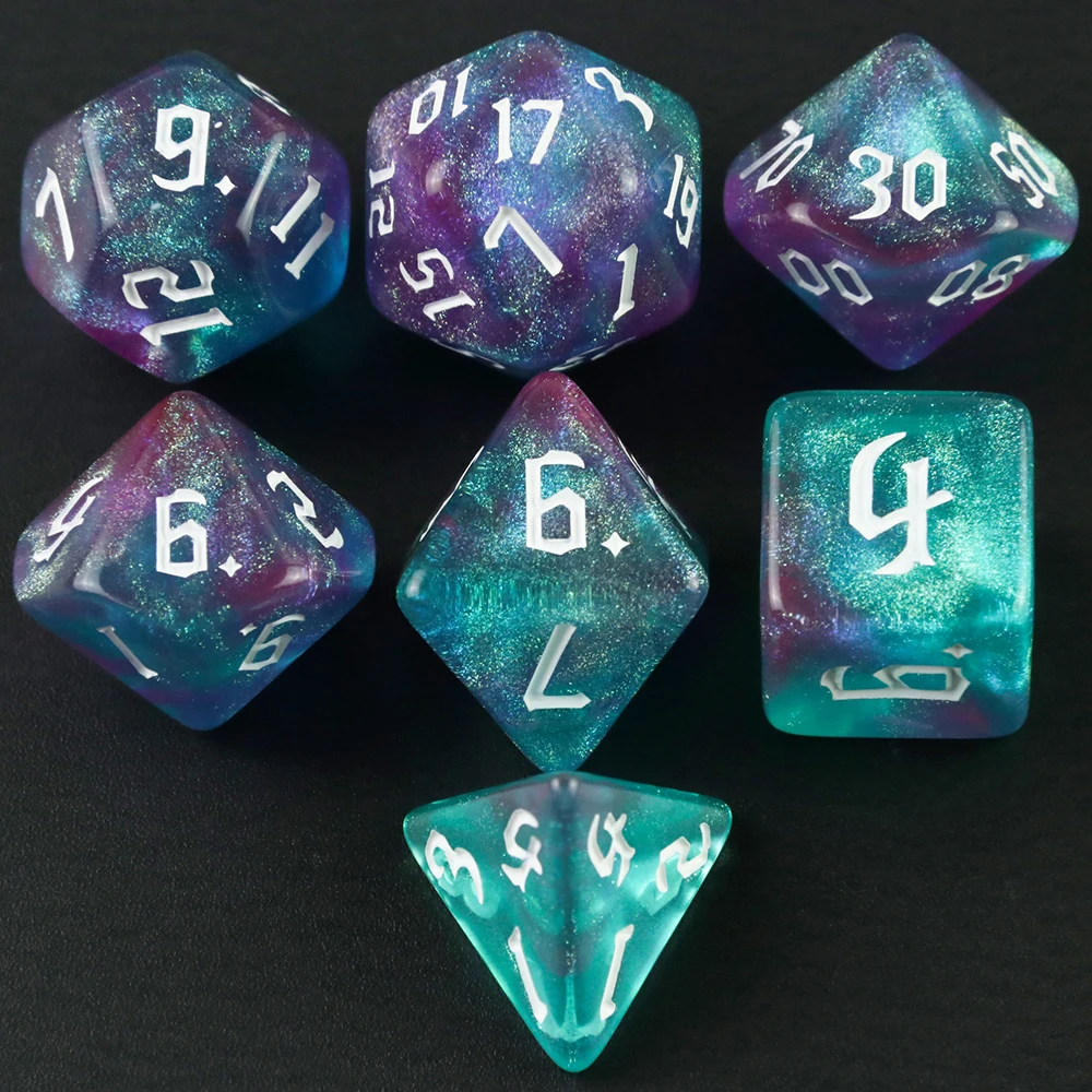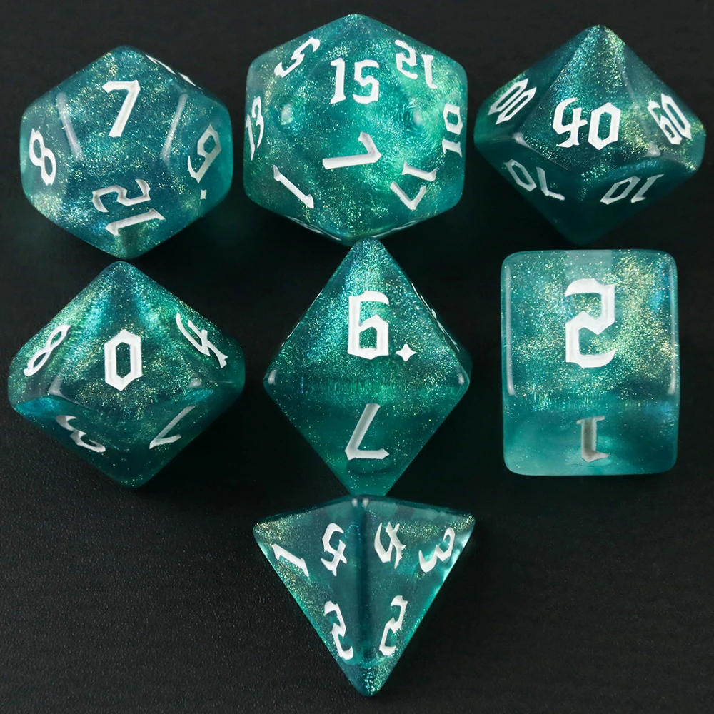 7 Pcs of New Double Colors Dice Polyhedral Gold Font Digital Dices Kit for TRPG RPG D20 D12 D10 D8 D6 D4 Table Game Board Gaming