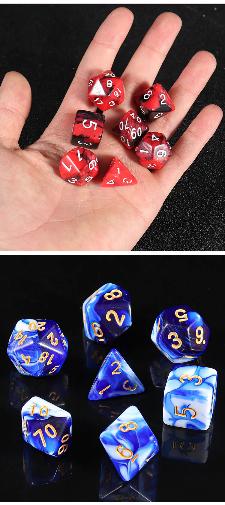 7Pcs New Mixed Dual Color Layered Dice Set Number Dice Kit for TRPG RPG D20 D12 D10 D8 D6 D4 Table Board Game Polyhedral Dice
