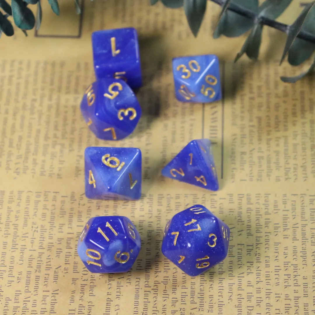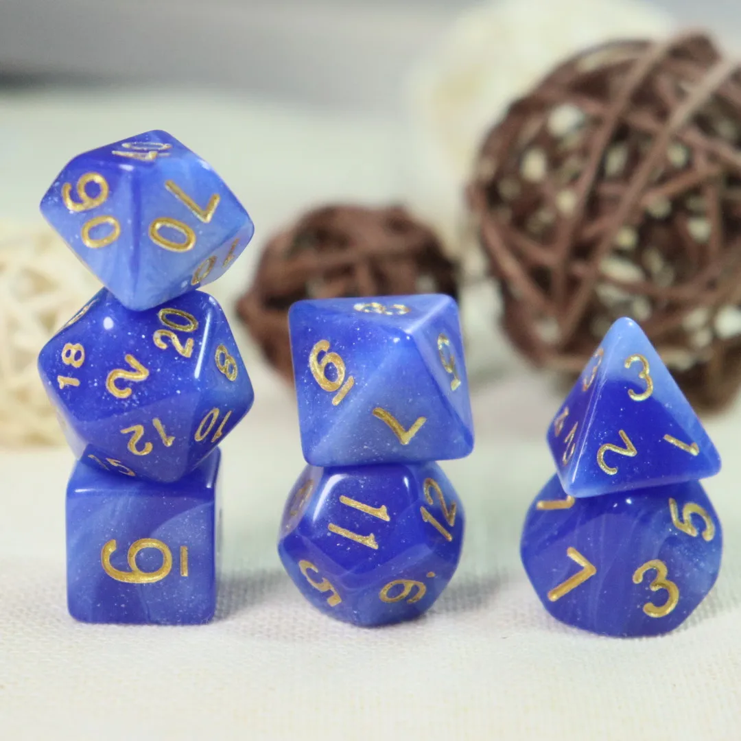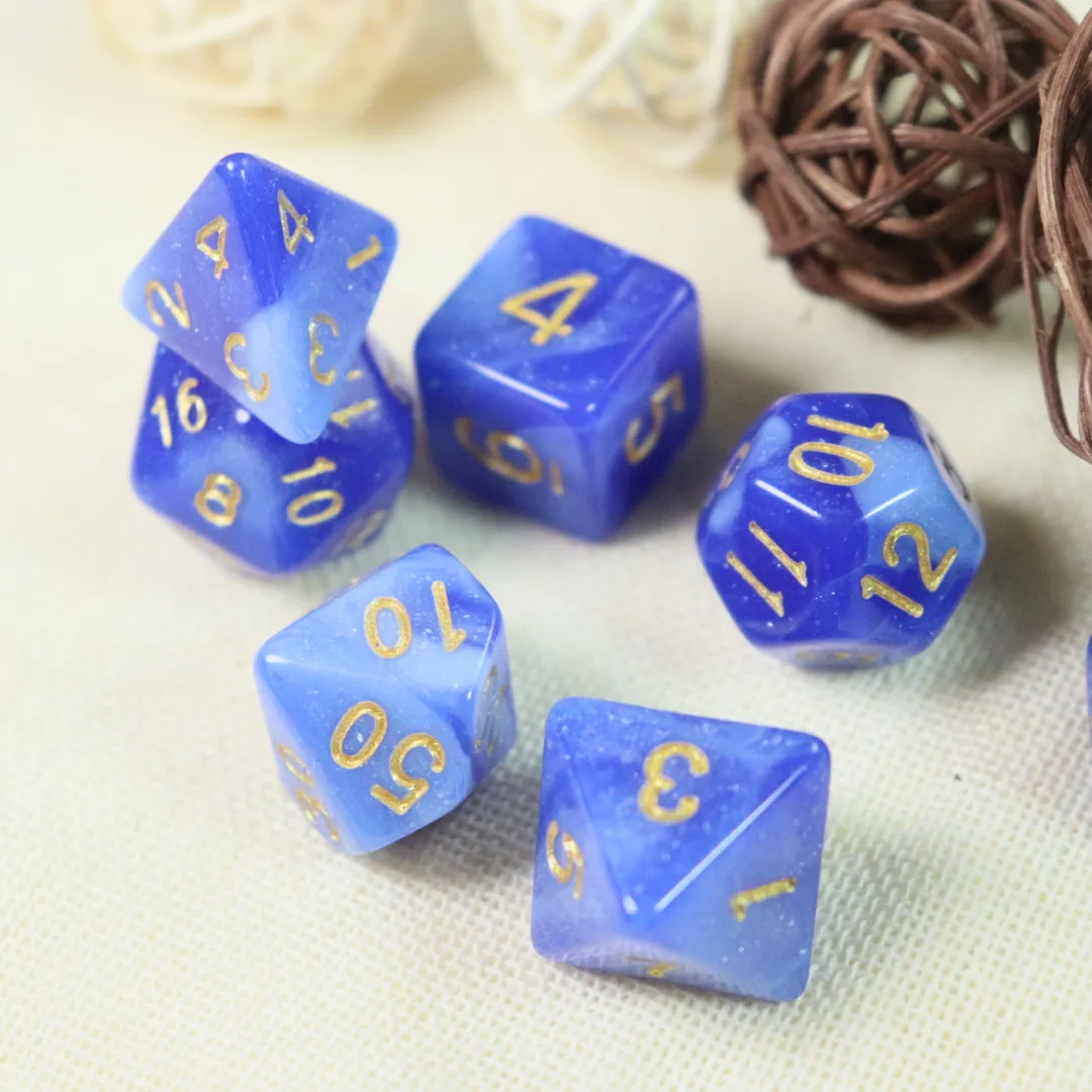 7-Piece Blue Starry Sky Series Galaxy Space Dice Set Suitable for Party with Friends, Family Games