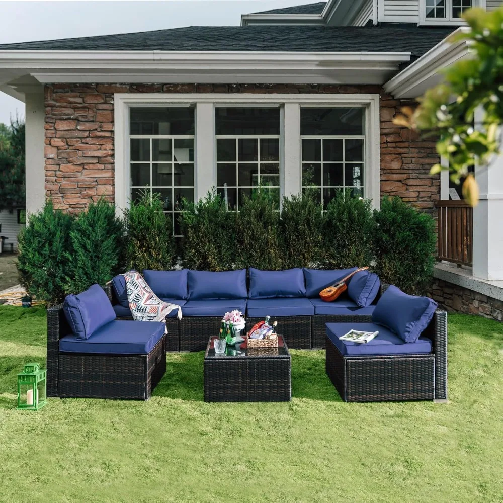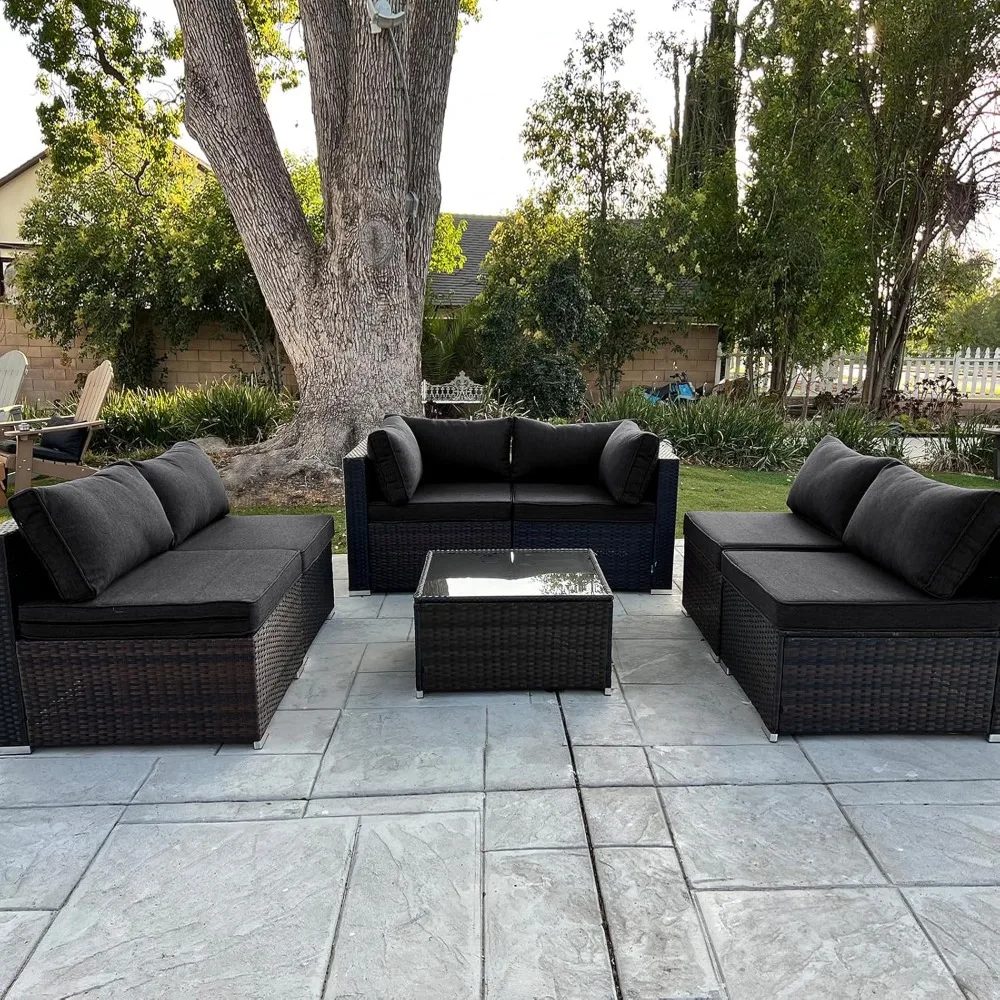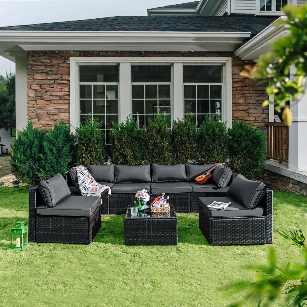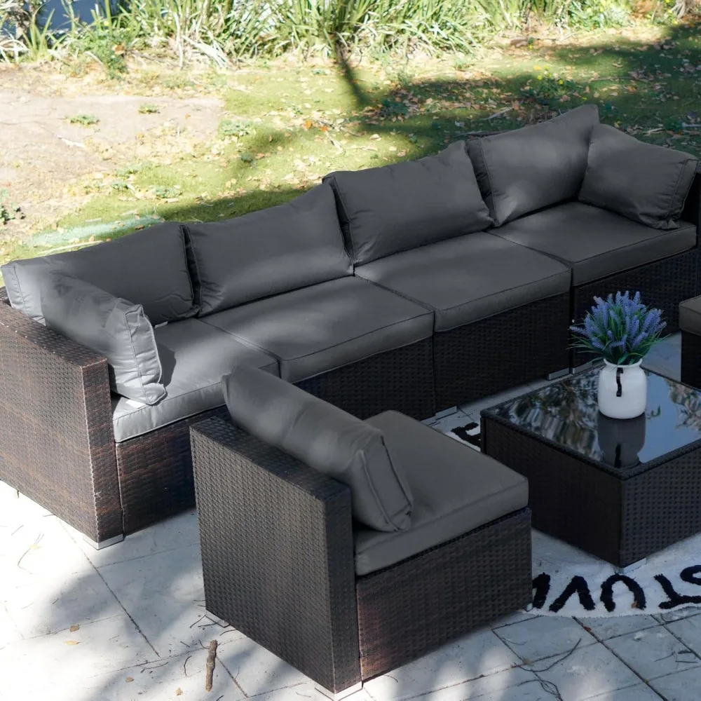 7 Pieces Patio Set, Wicker Conversation Sets with Cushion and Table, 7-Pieces Couch,Patio Furniture Set for Porch Backyard