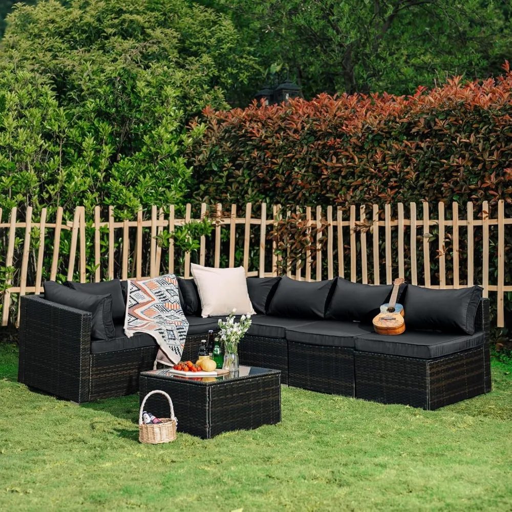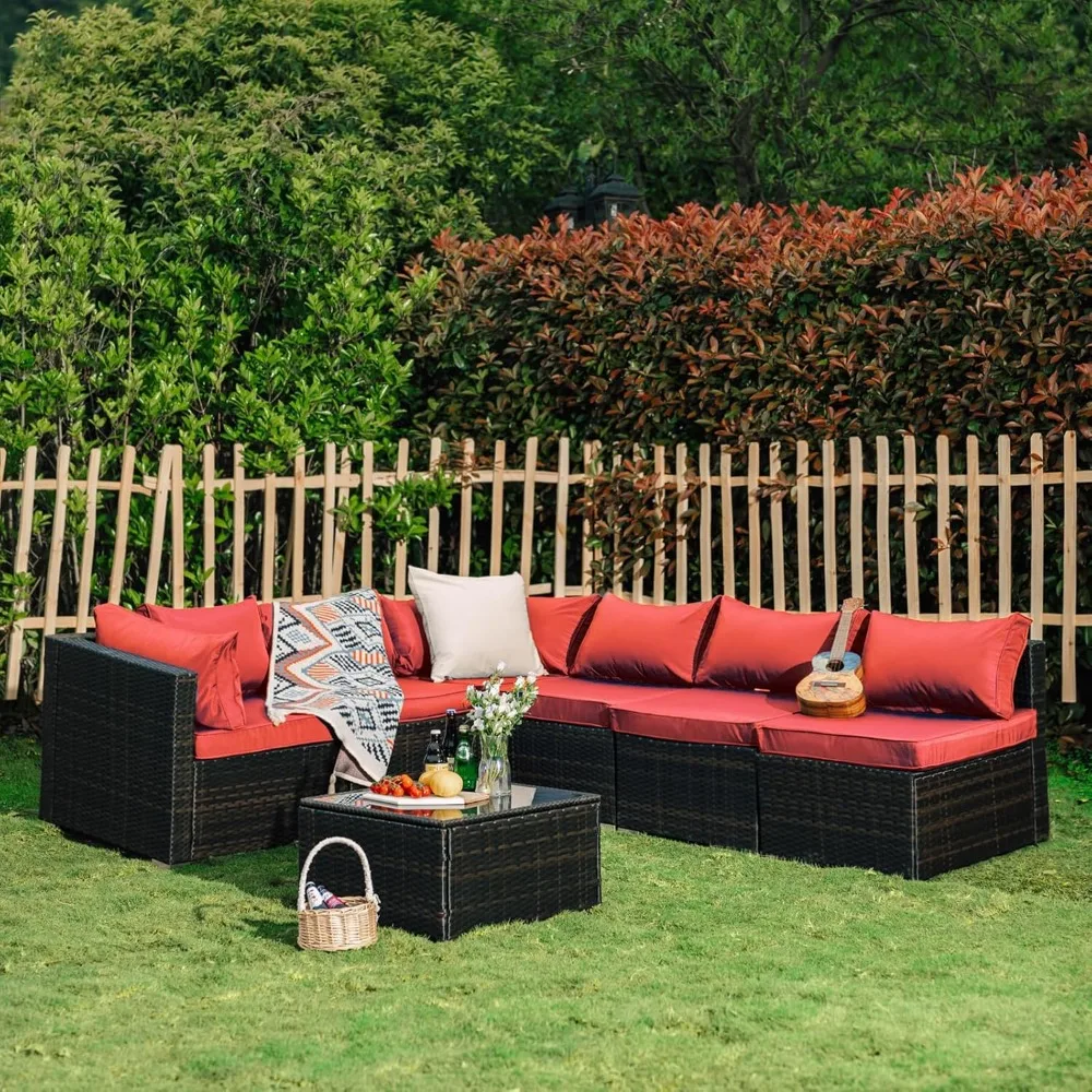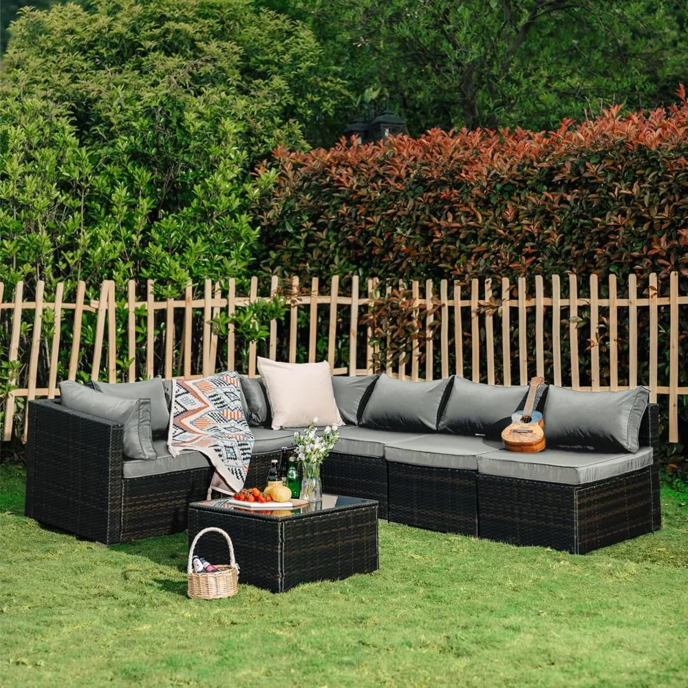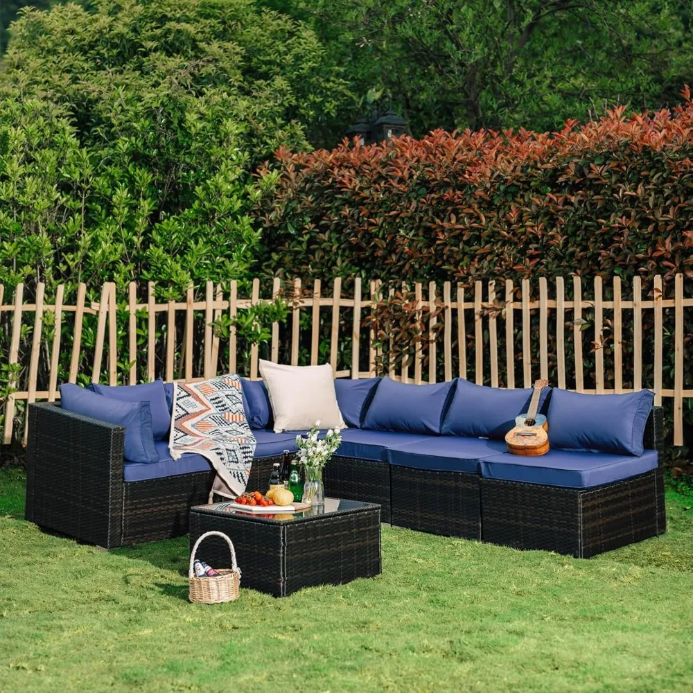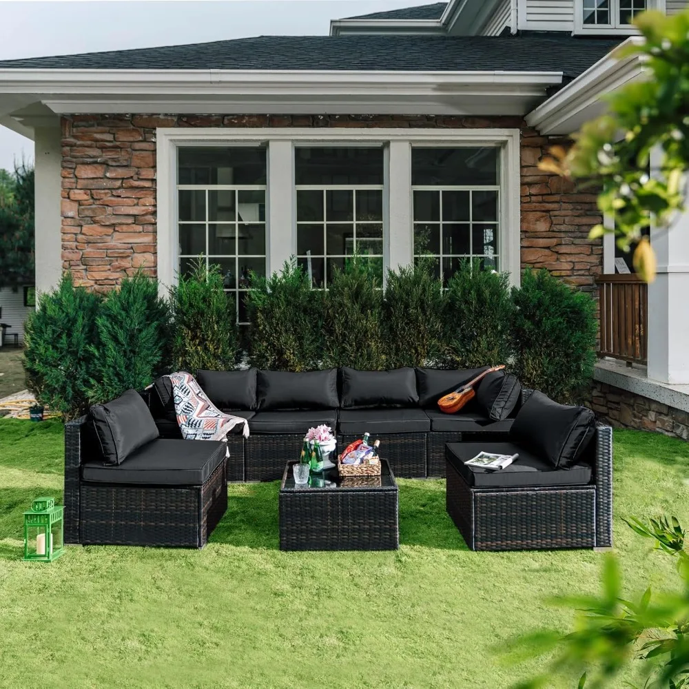 7 Pieces Patio Set, Wicker Conversation Sets with Cushion and Table, 7-Pieces Couch,Patio Furniture Set for Porch Backyard
