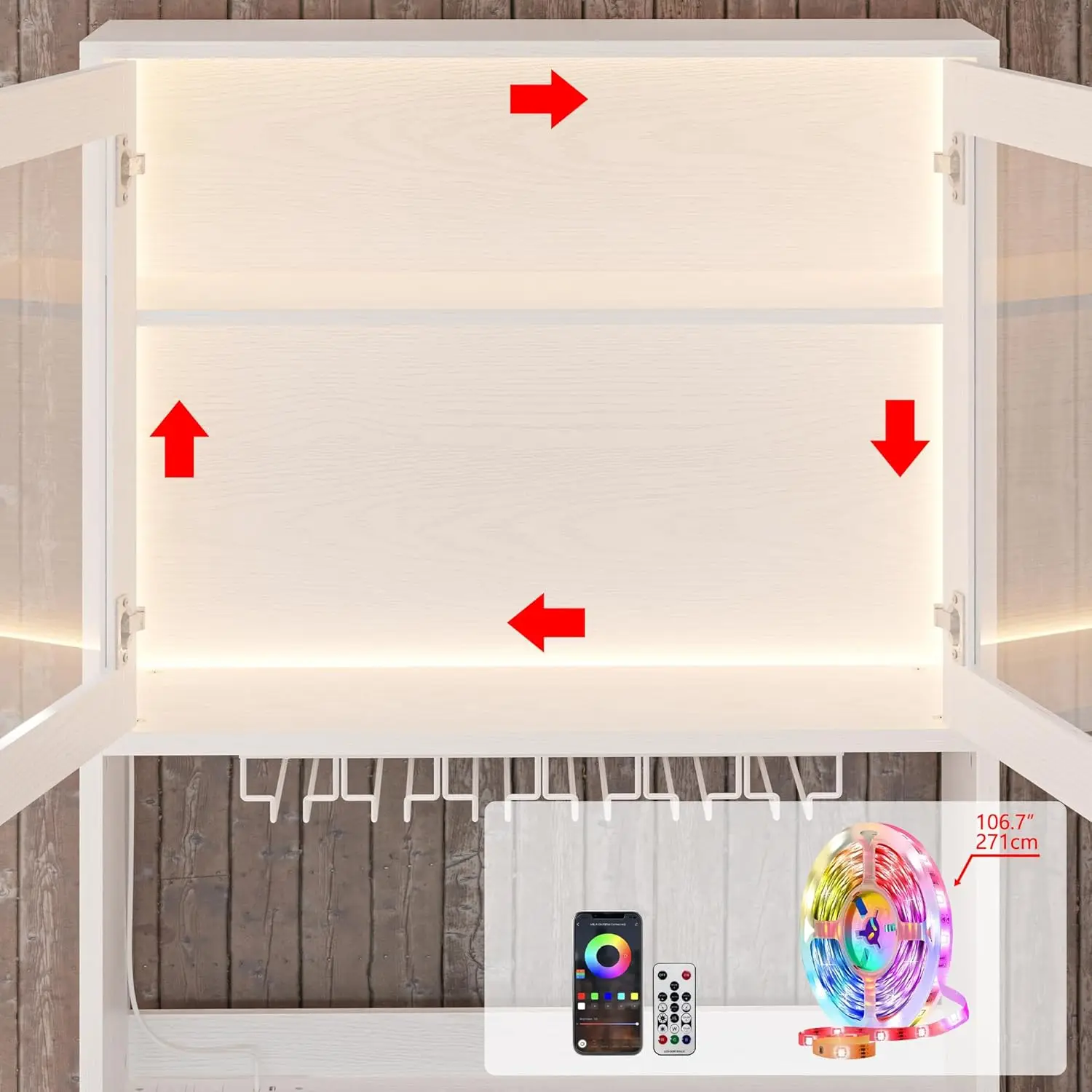 • LED Light with Motion Sensor: The cabinet features an RGB LED light with IR remote control & APP. The infrared motion sensor ensures that the light turns on when you approach and turns off when you leave