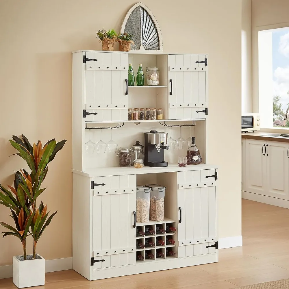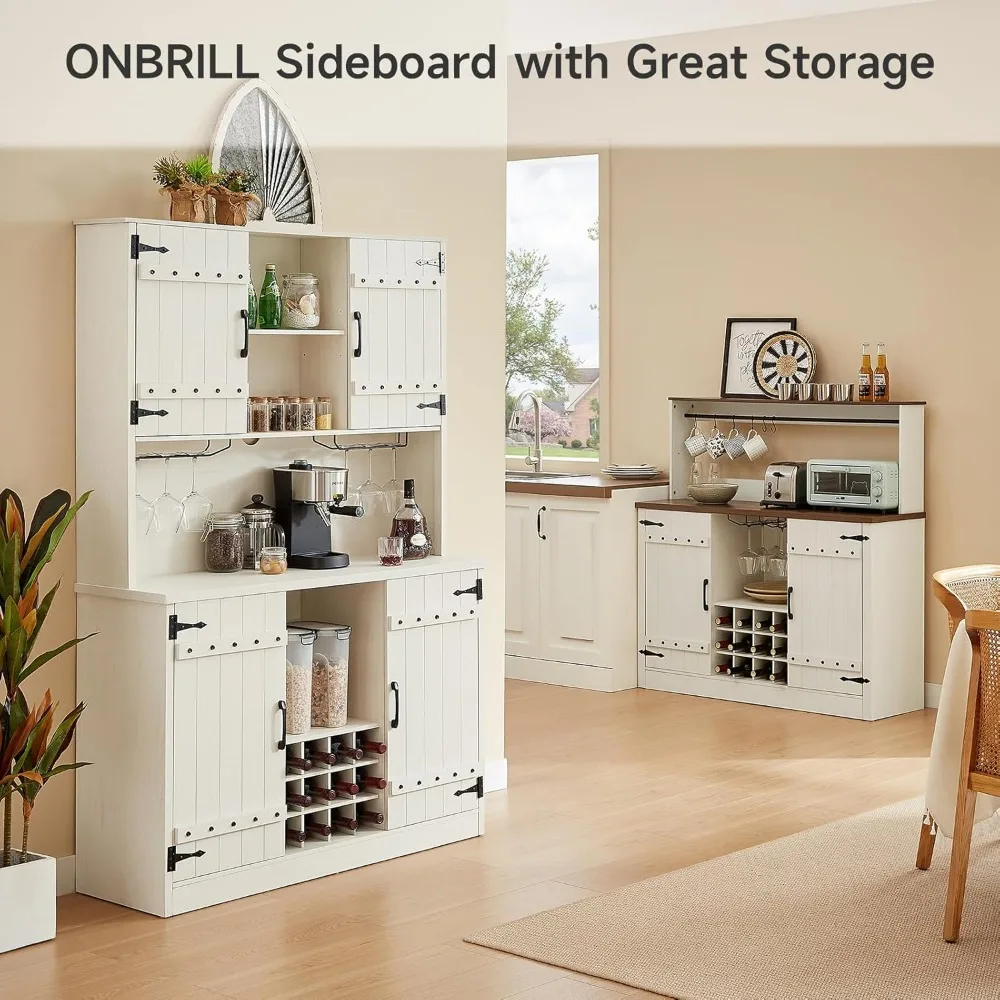 • Versatile Functionality: The generous 47x15inch countertop is ideal for a microwave, coffee maker, or whiskey display. Each kitchen cabinet includes adjustable shelves for storage. Whether utilized as a storage solution, coffee bar, kitchen cabinet, or bookcase, it caters to your diverse needs seamlessly.