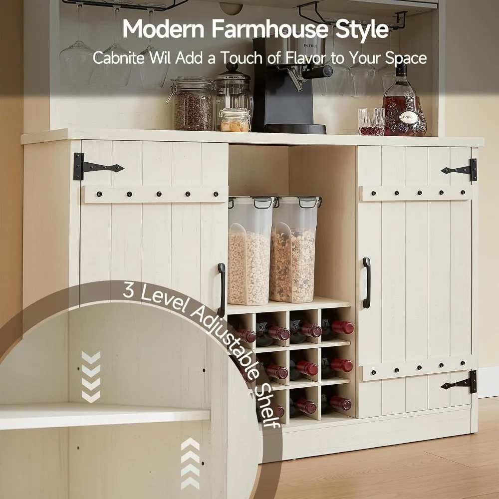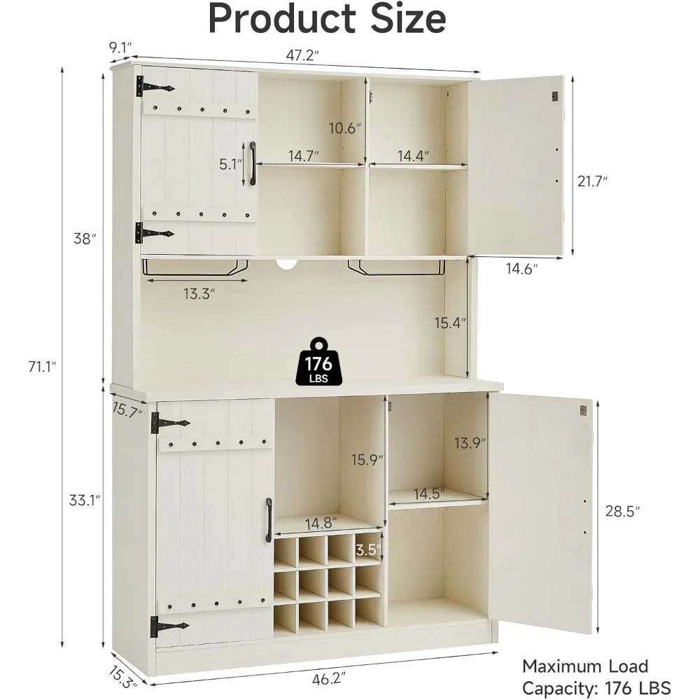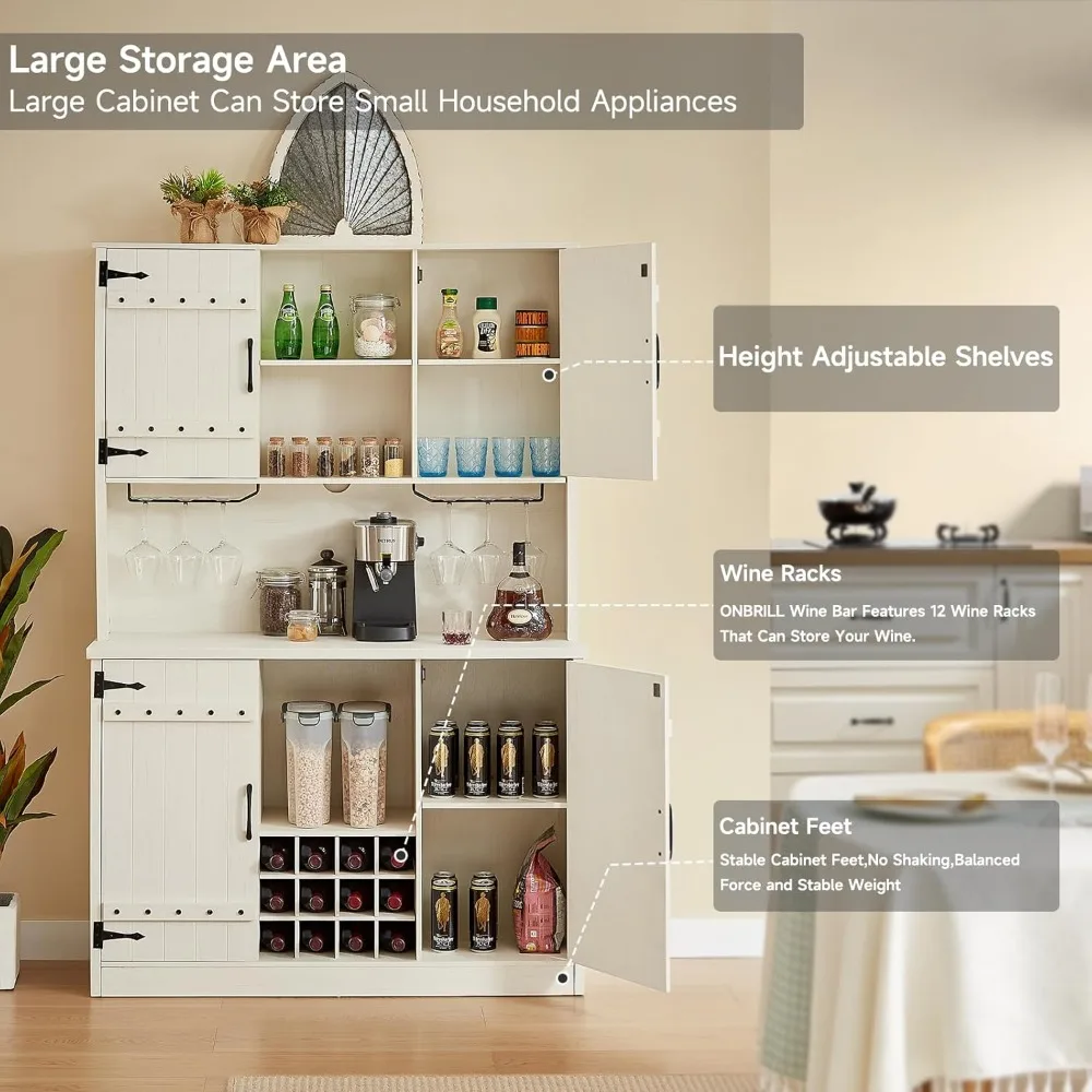 71″ Farmhouse Kitchen Cabinet Pantry Bar Cabinet with Storage and Adjustable Shelves, Wine Cabinet with 12 Wine Racks
