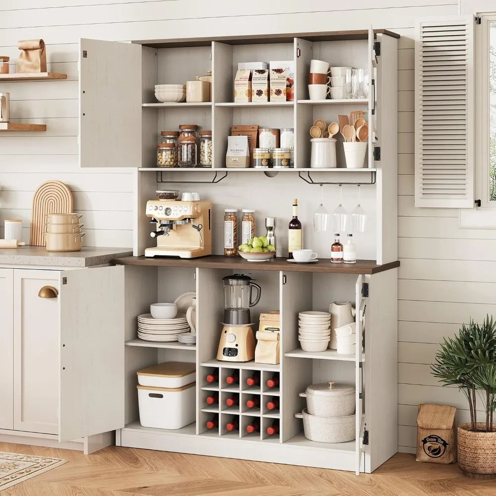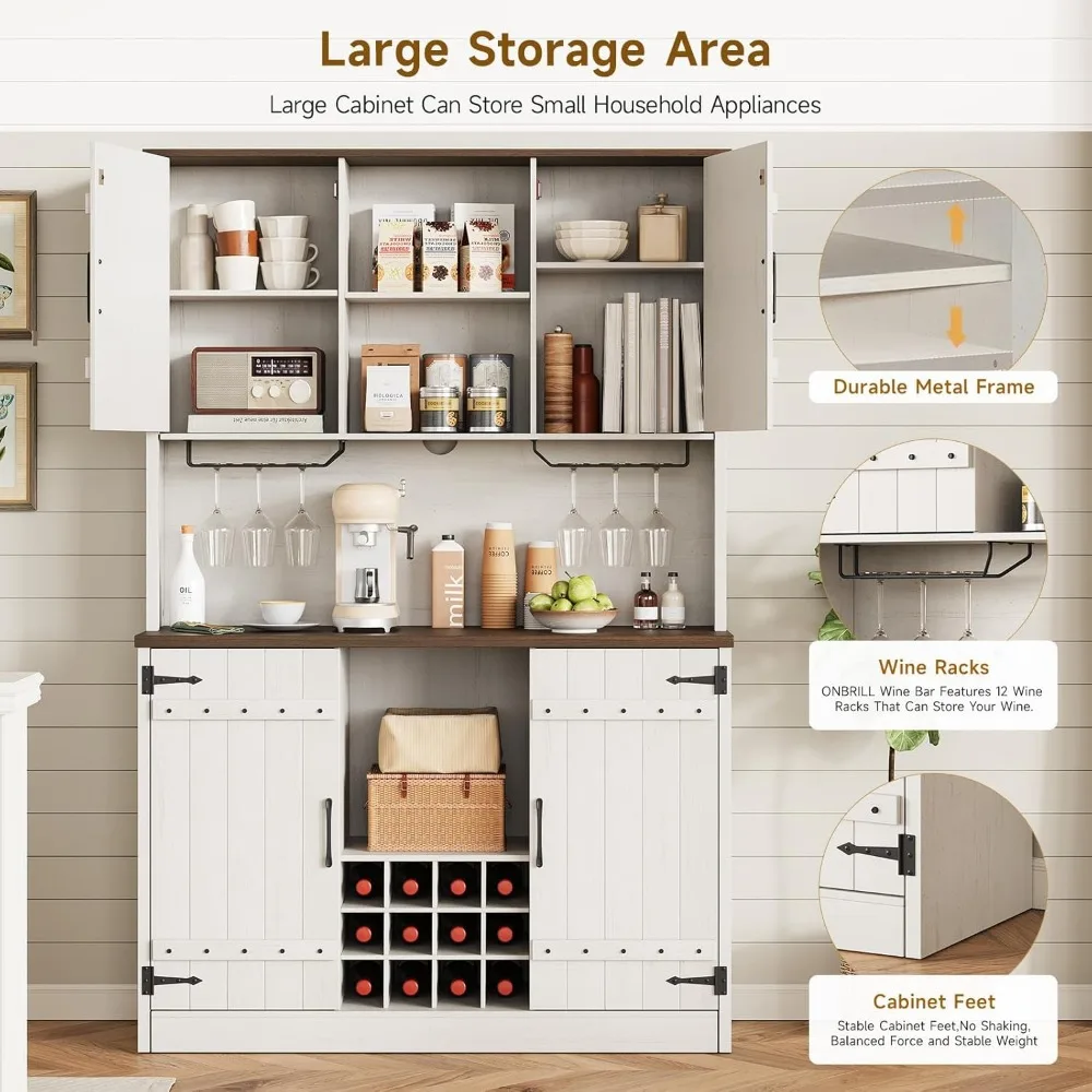 - Versatile Functionality: The generous 47x15inch countertop is ideal for a microwave, coffee maker, or whiskey display. Each kitchen cabinet includes adjustable shelves for storage. Whether utilized as a storage solution, coffee bar, kitchen cabinet, or bookcase, it caters to your diverse needs seamlessly.