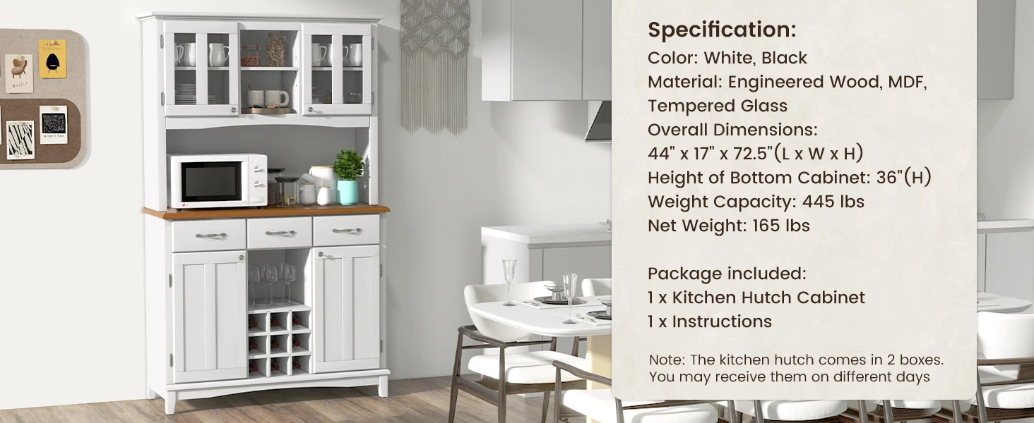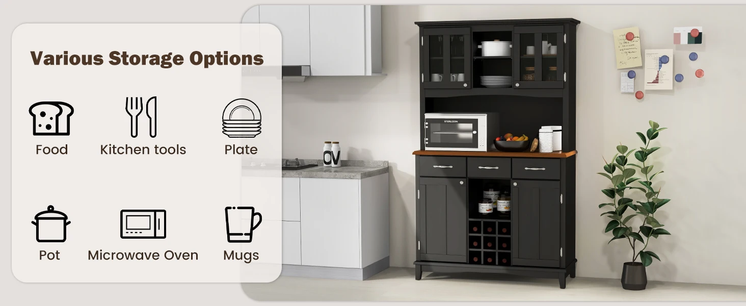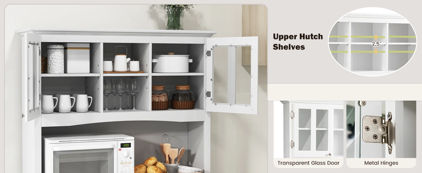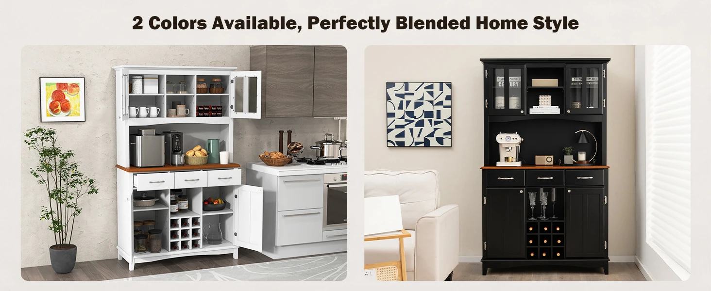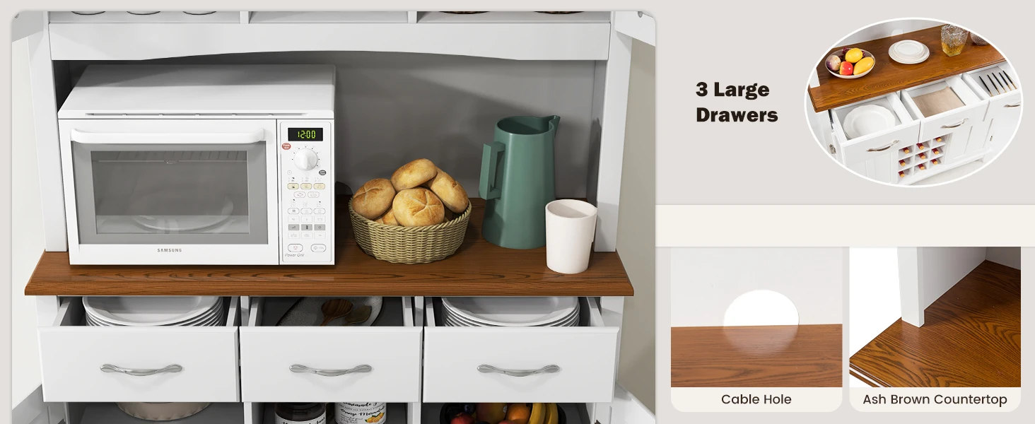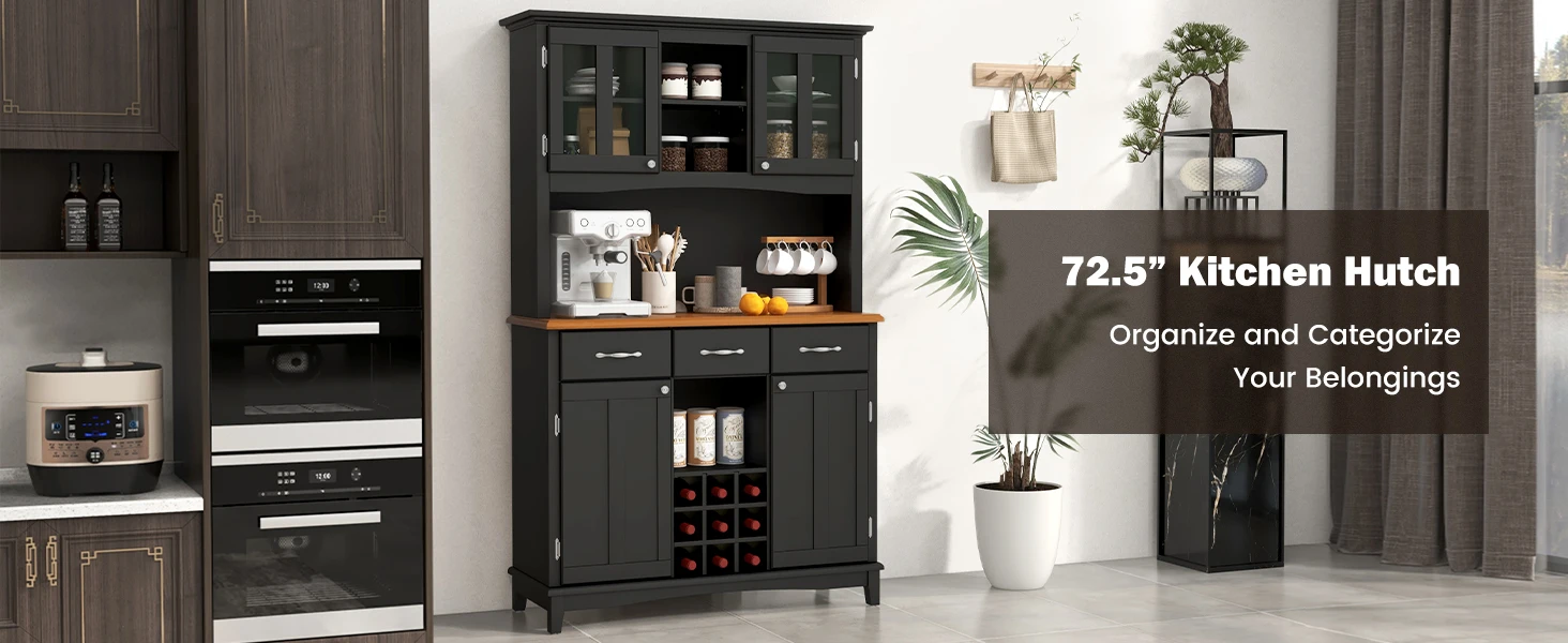 72.5” Buffet with Hutch, Freestanding Pantry Storage Cabinet with Drawers, Adjustable Shelves, Wine Grids, Microwave Countertop,